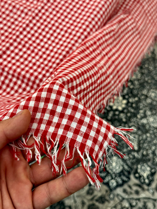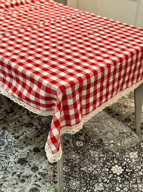 مفرش طاولە مربعات صغير احمر 170x170سم تركي