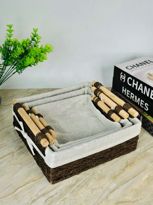 قطعة سلة تخزين من الخيزران المنسوجة ٣ طبق