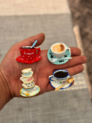 طقم سكر و شايي و قهوه سيراميك و قاعدة بامبو bh-6