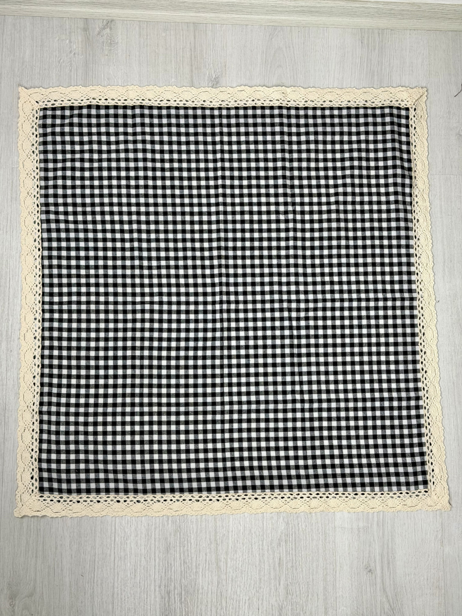 شرشف كاروهات مربع حافات دانتيل قياس ٨٠سم ب٨٠سم