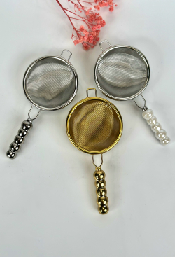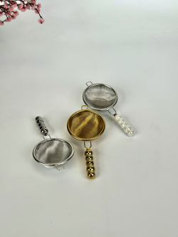 مصفاة شايي يد زجاج ابيض،ذهبي،فيضي