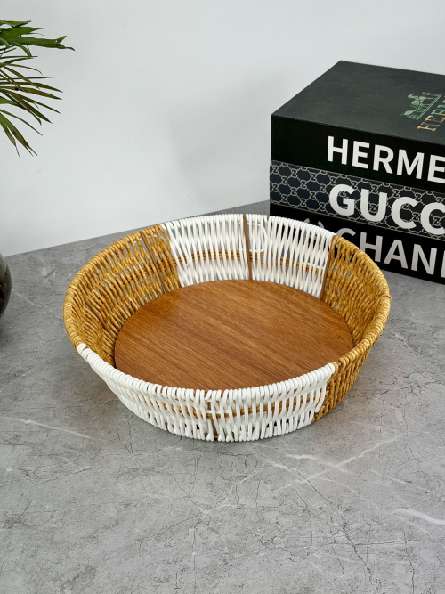 سلة او صيني خوص دائري لونين