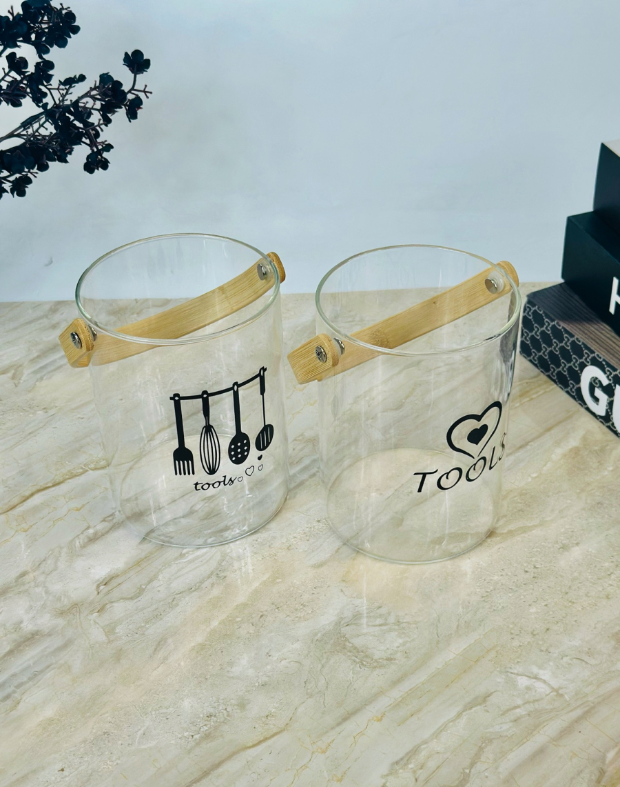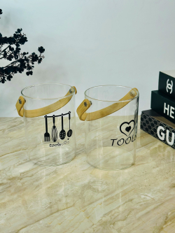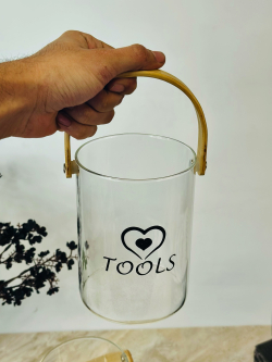دلو ثلج زجاج مع ملقط اطار ذهبي