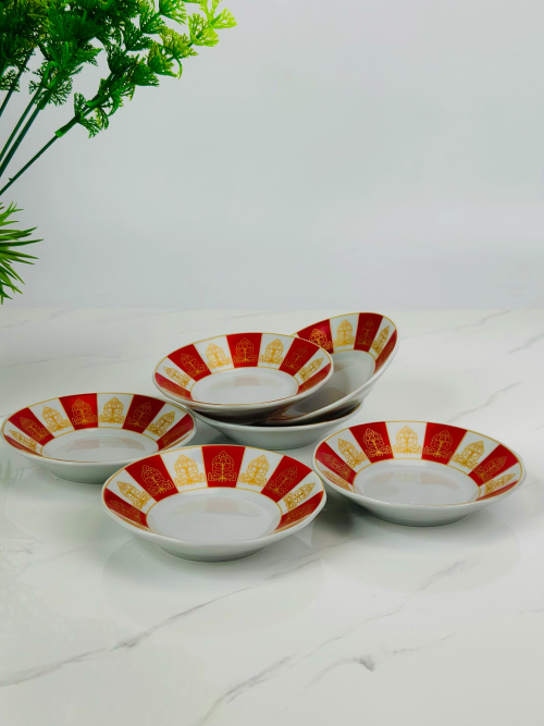 طقم اكوب و صحن اطار ذهبي زكزاك 6عدد