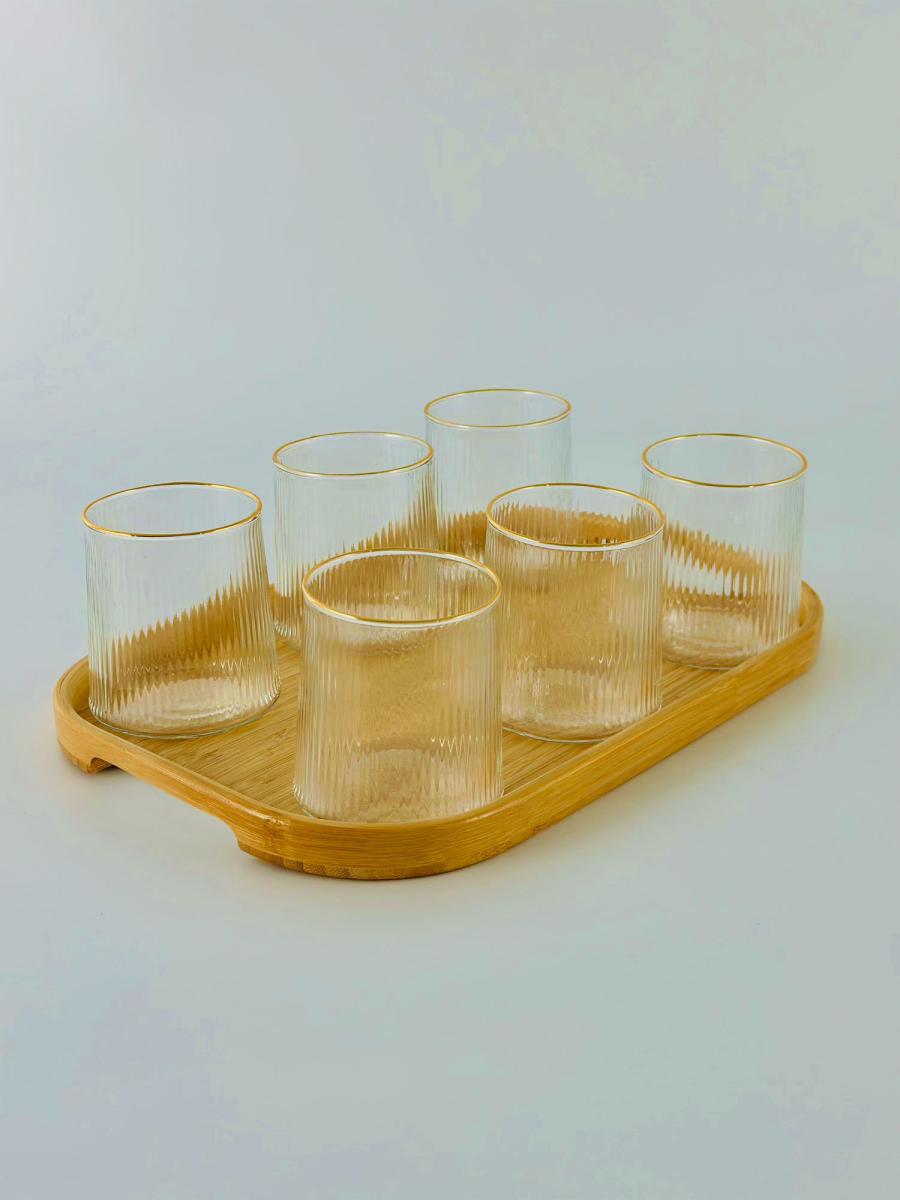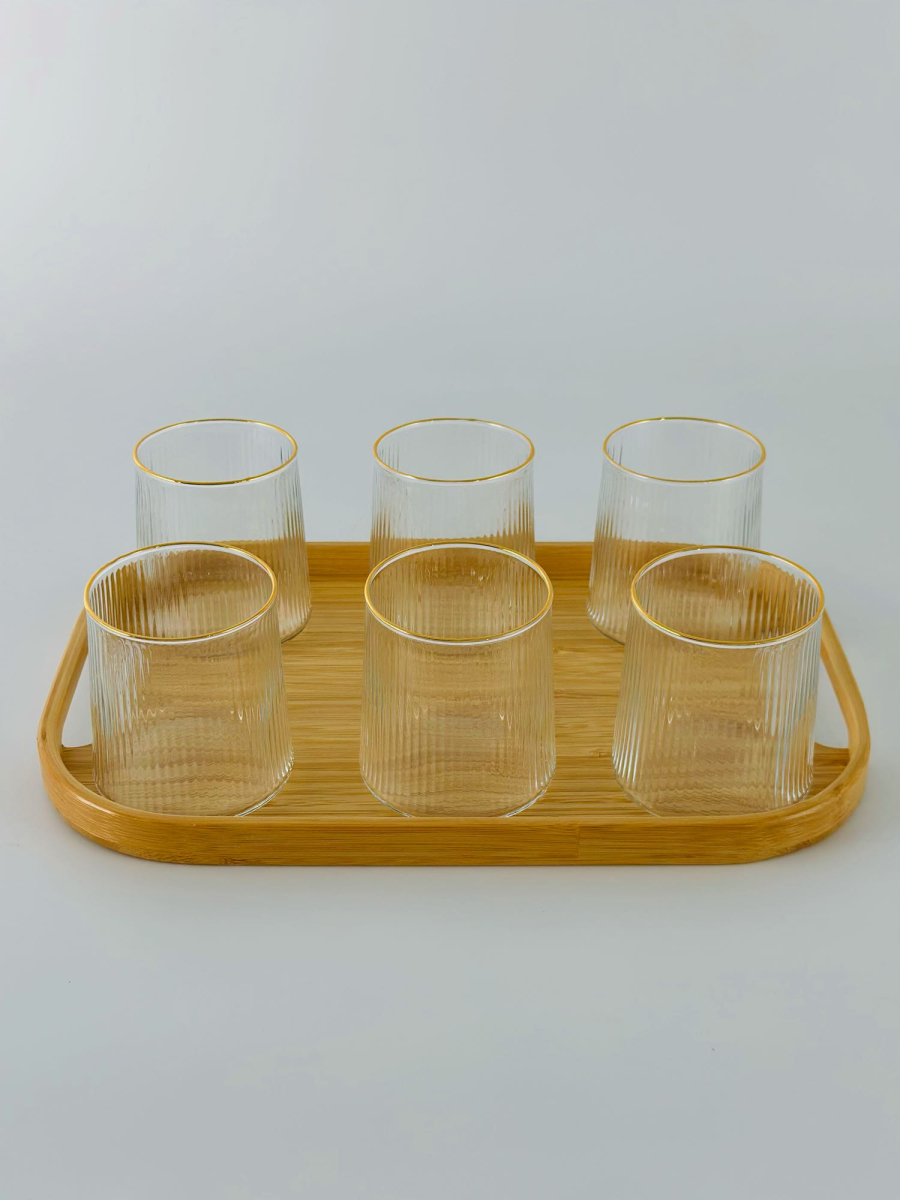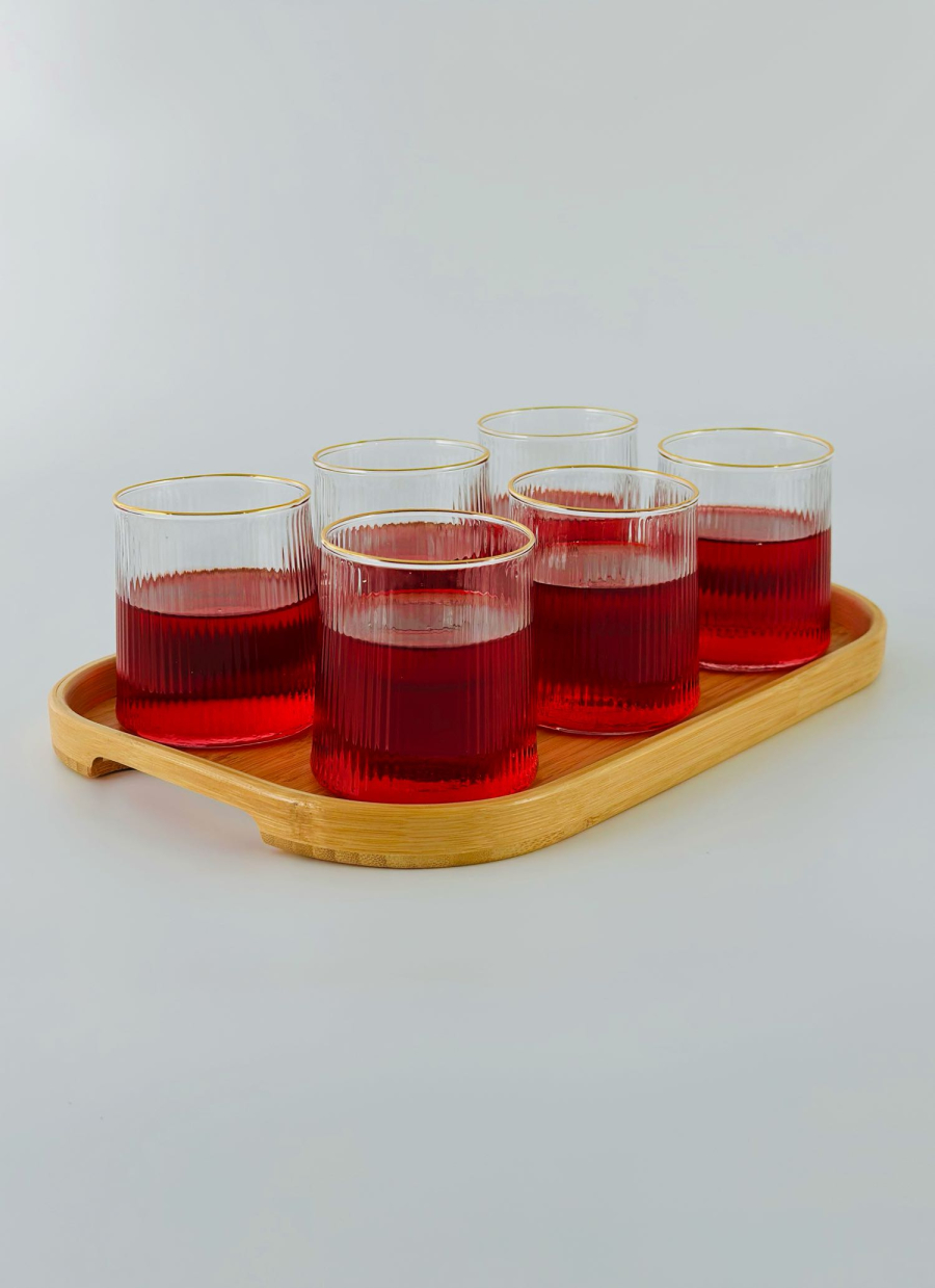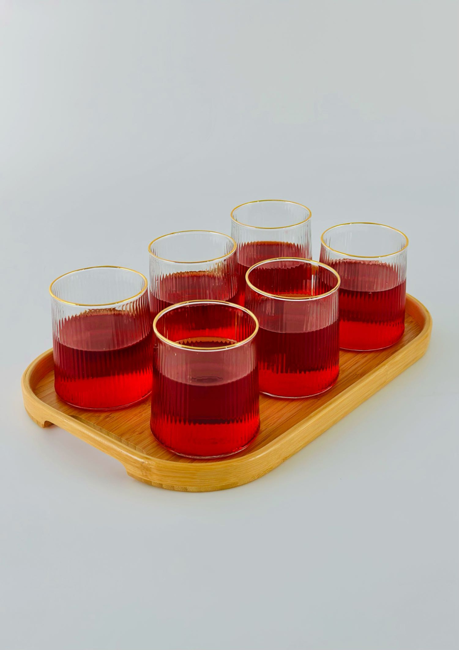 طقم كلاص زجاج 6 قطعة اطار ذهبي B