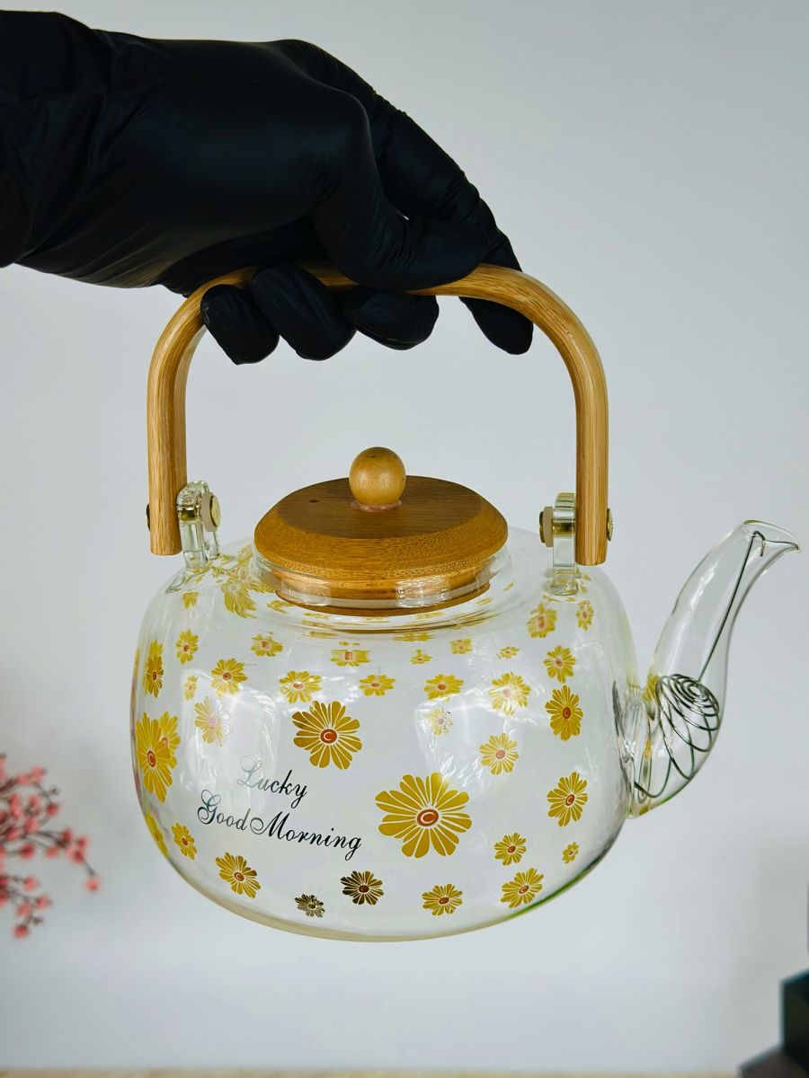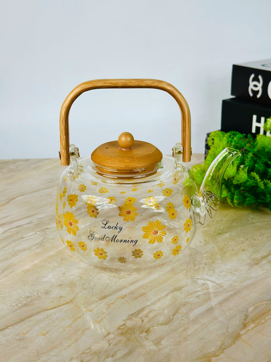 قوري زجاج بايريكس good morning يد بامبو كبير