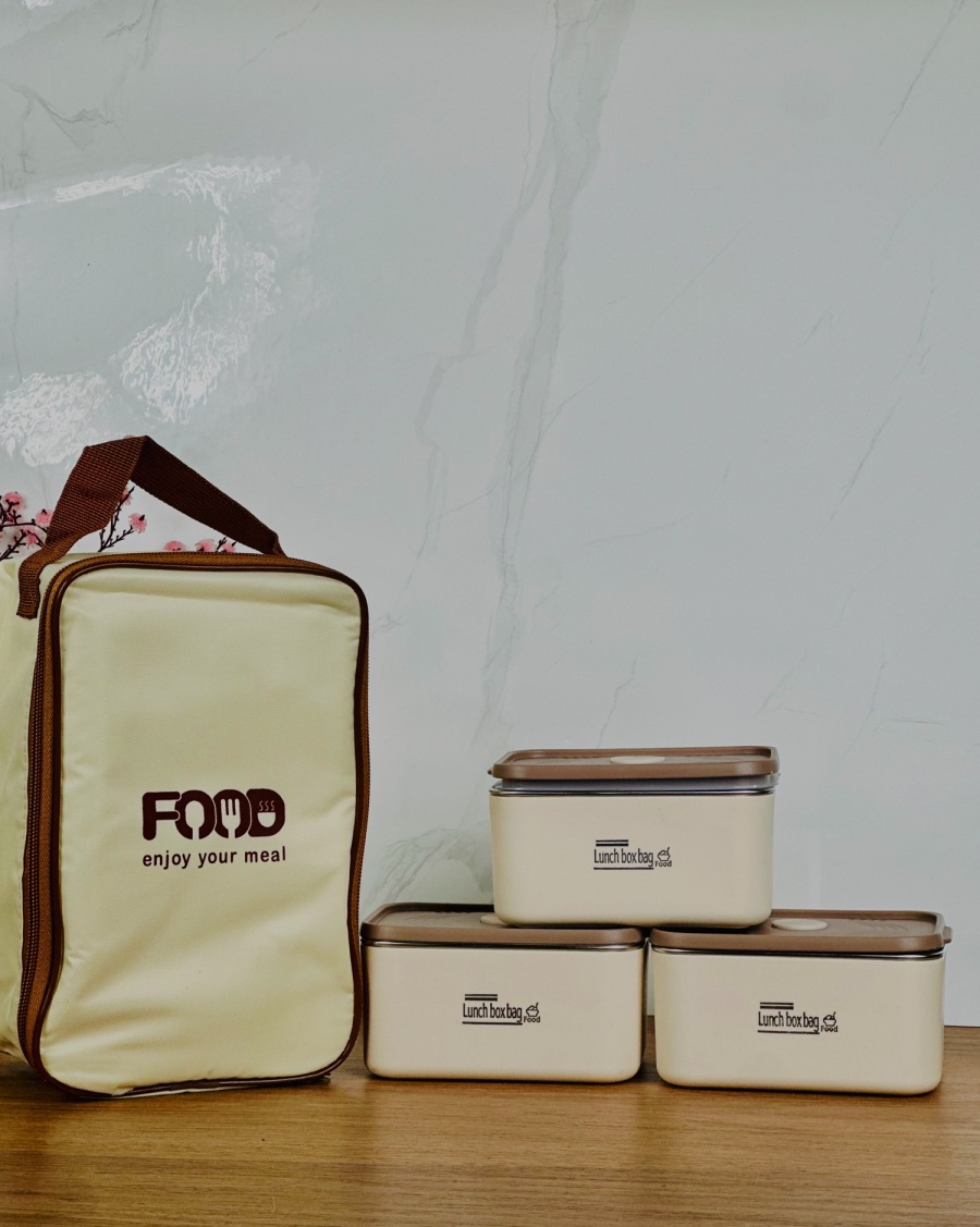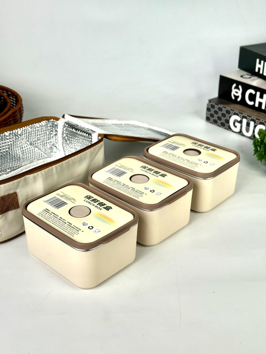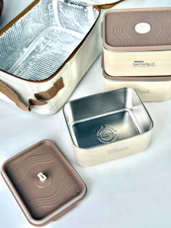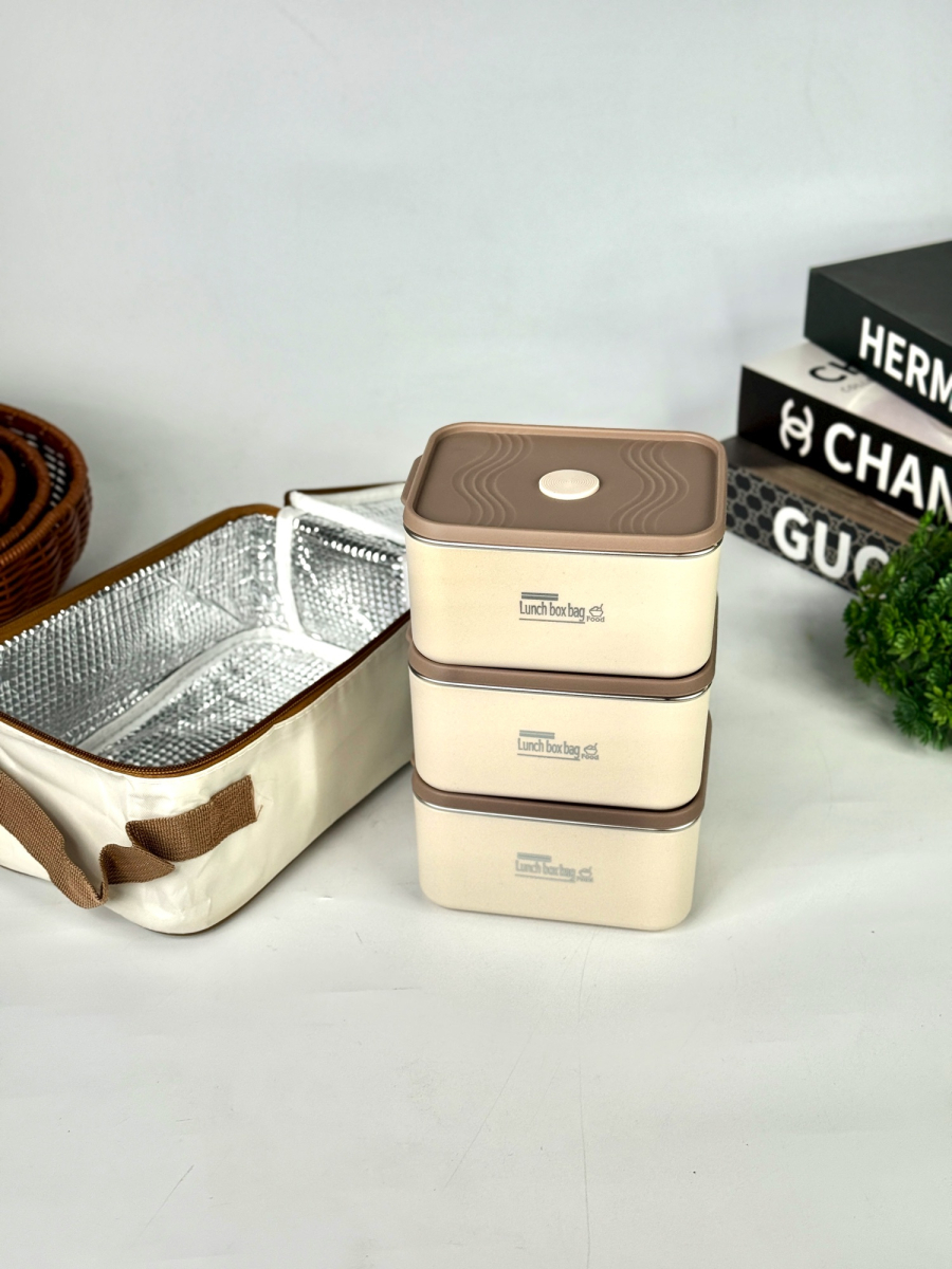 علبة غداء من 3 طبق اصلي و غلاف مستطيل