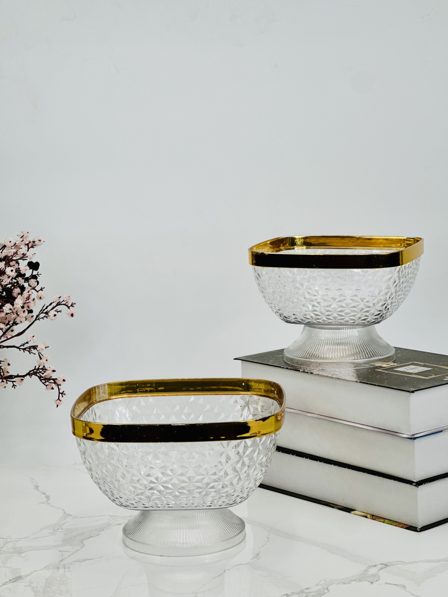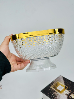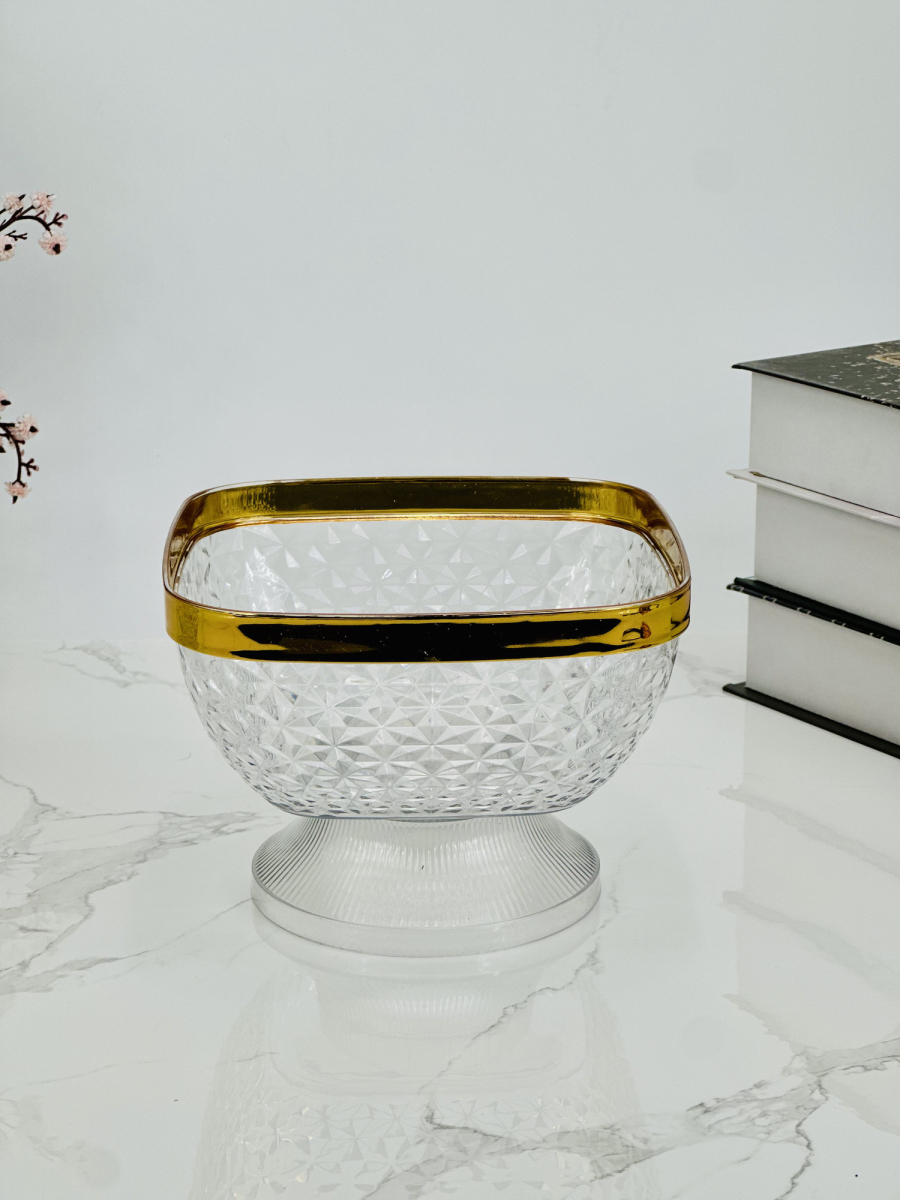 كاسة اطار ذهبي مربع حلويات و فواكهة 18سم وسط