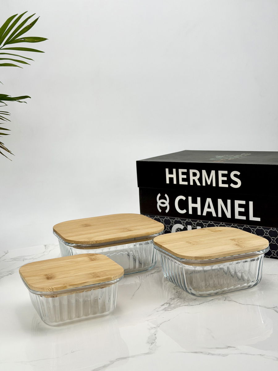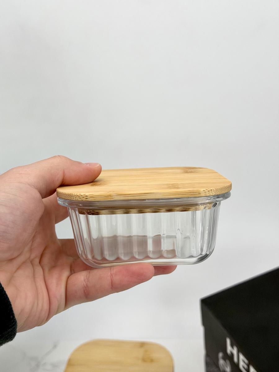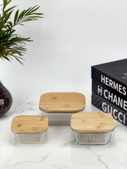 سيت حافظة زجاج مشيف قبق بامبو مربع