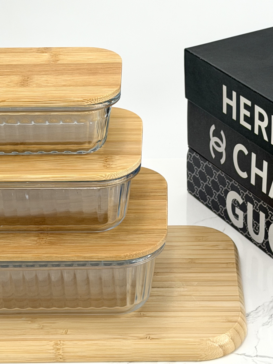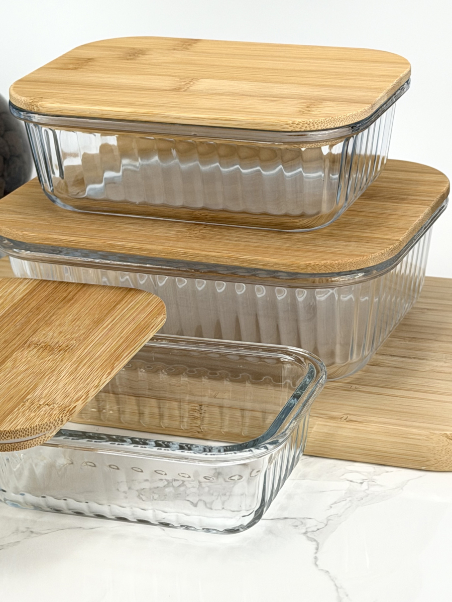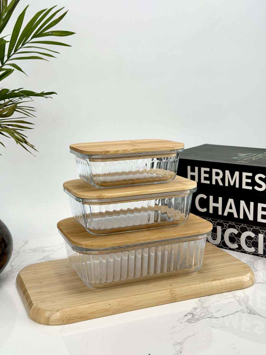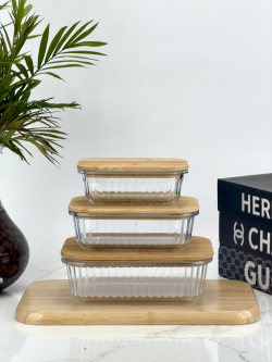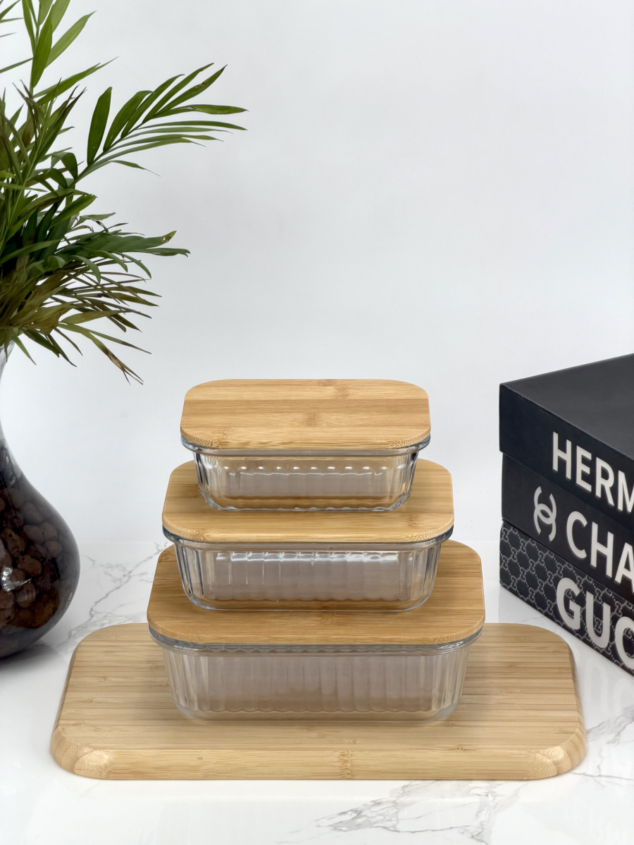 سيت حافظة زجاج مشيف قبق بامبو مستطيل