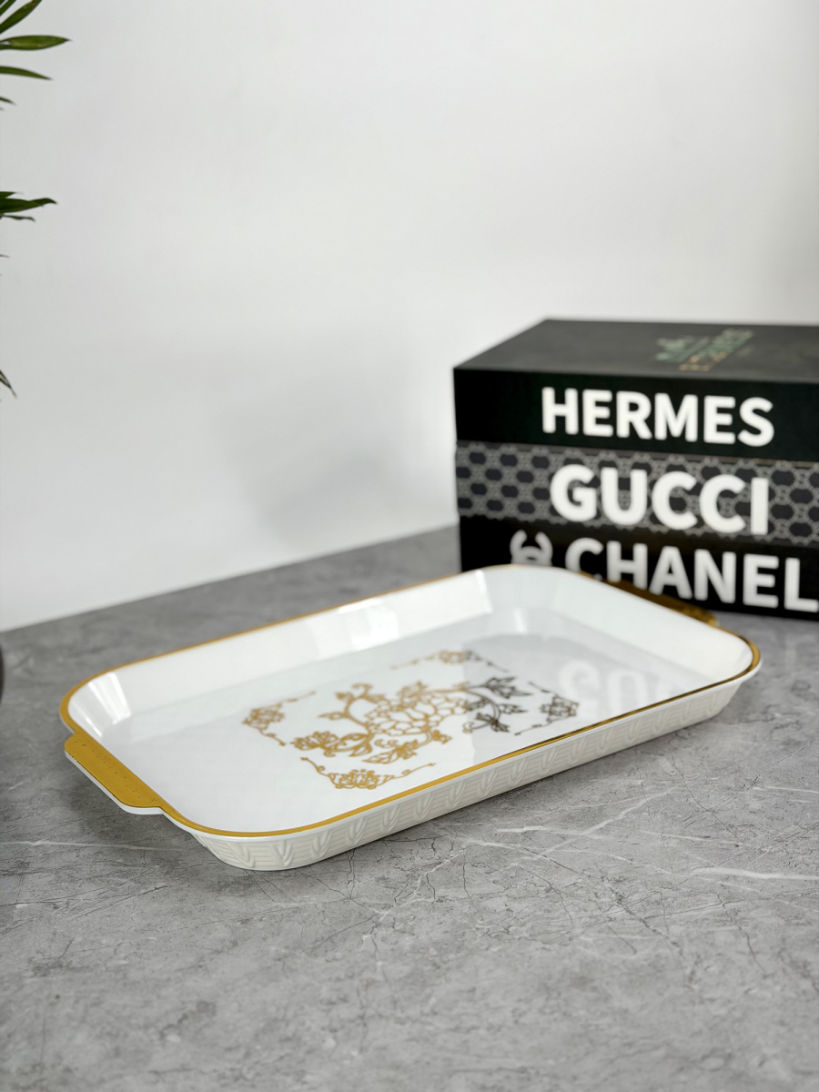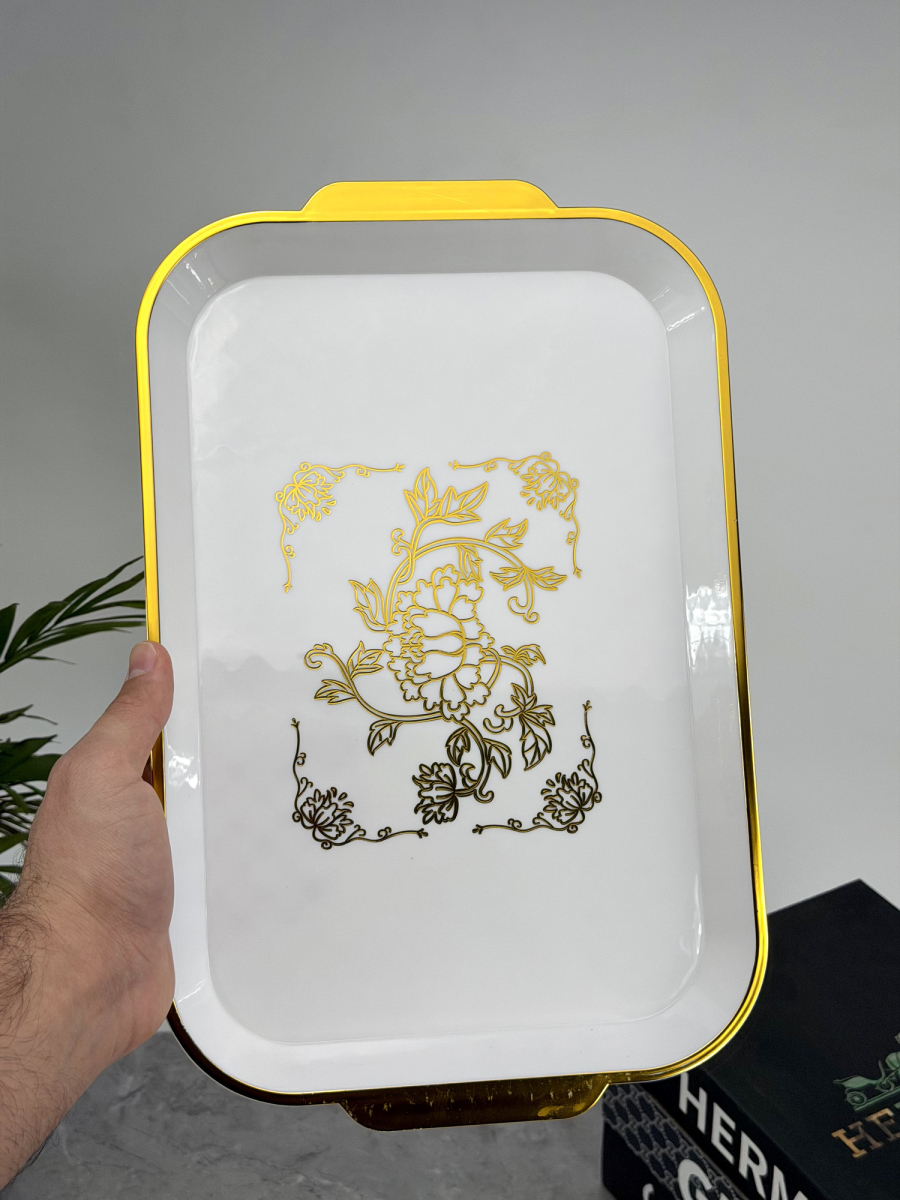 صینیه بلاستیك مستطیل اطار ذهبي 22x35سم