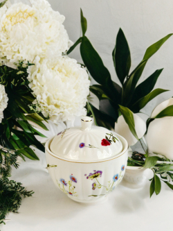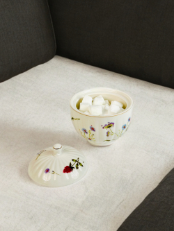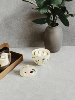 فرشاة اطباق بلاستيكية على شكل زهرة صفراء مع يد