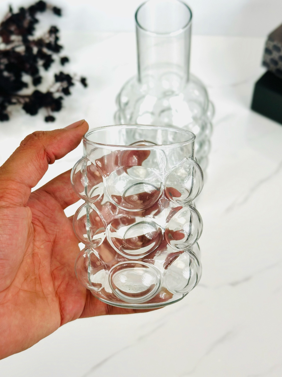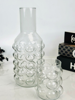 طقم سكر وشايي زجاج قبق خشبي رباعي