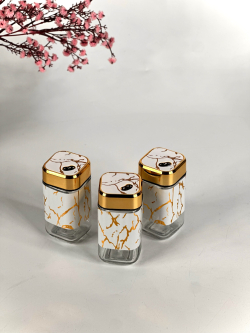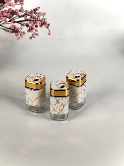 طقم سكر وشايي زجاج ثلاثي ويه ملاعق و قبق خشبي