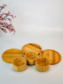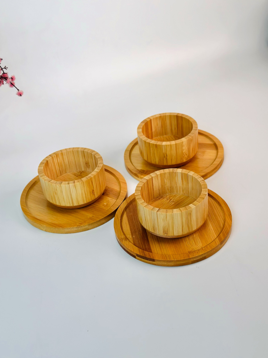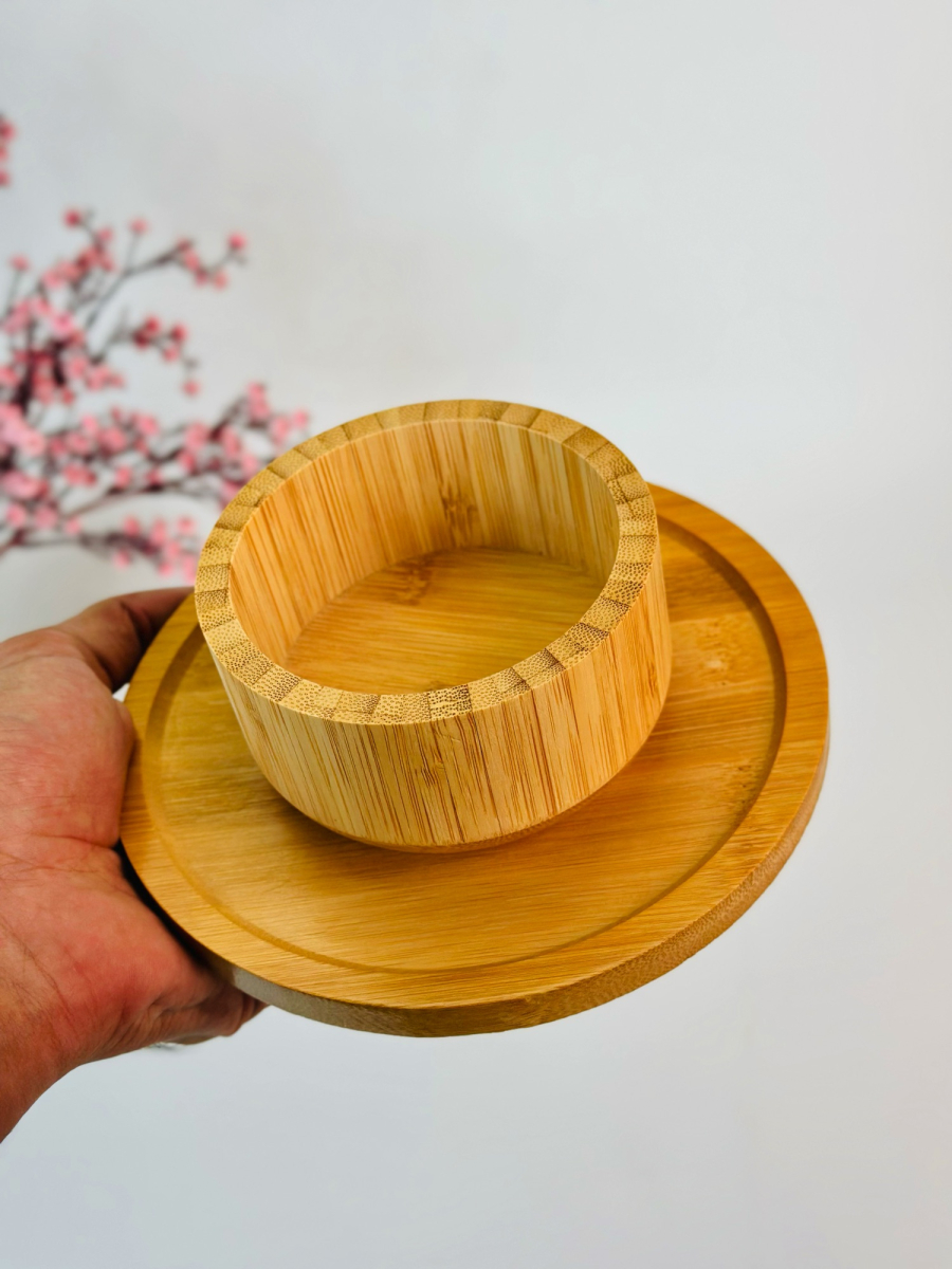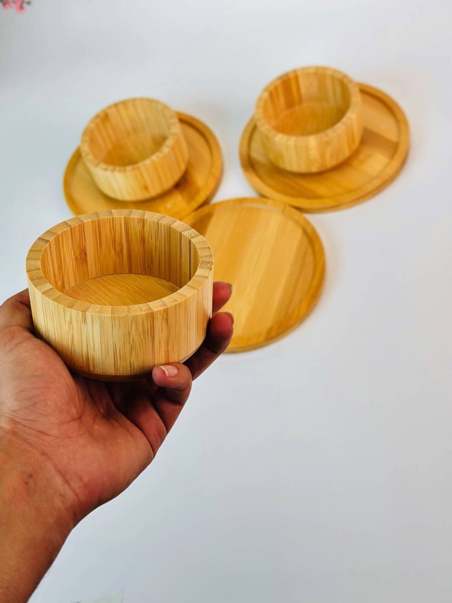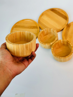 طقم سكر وشايي سيراميك وقاعدة بامبو جديد