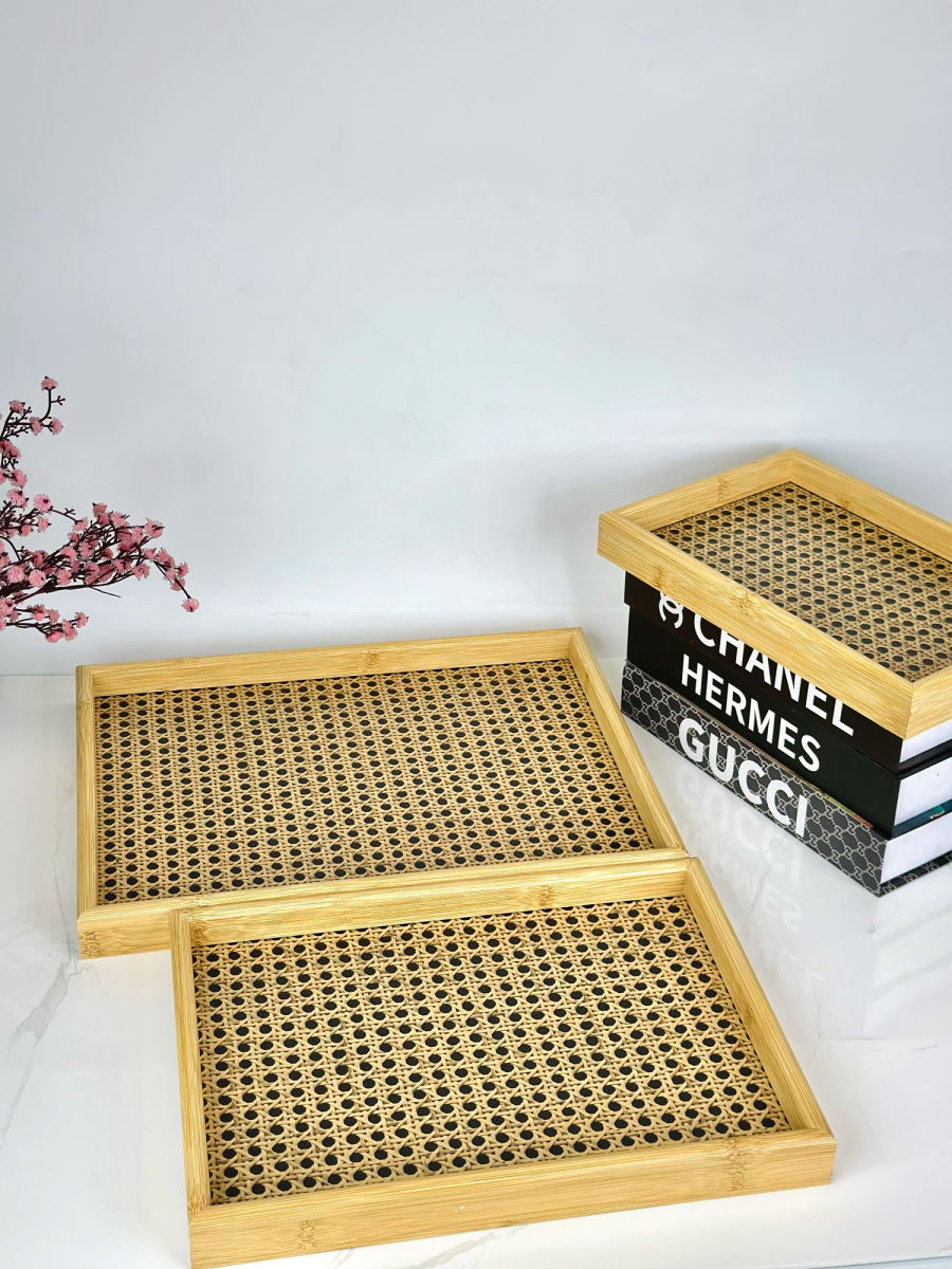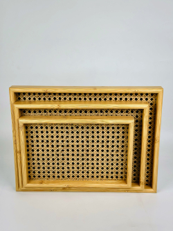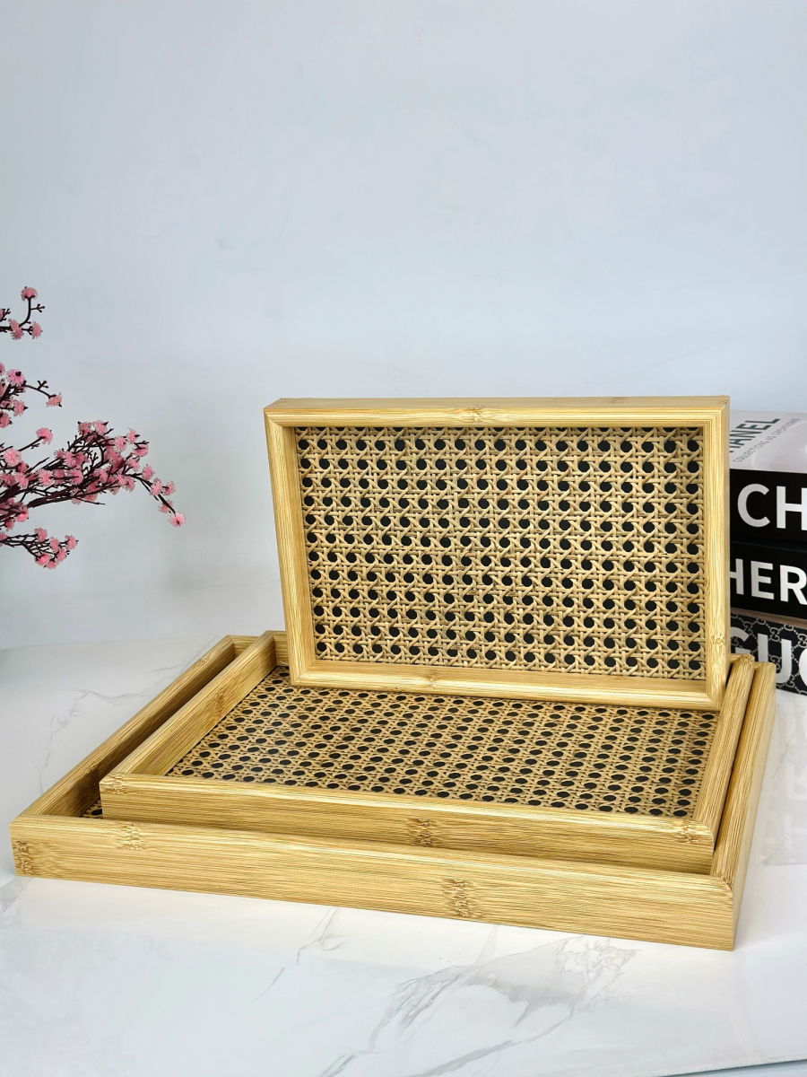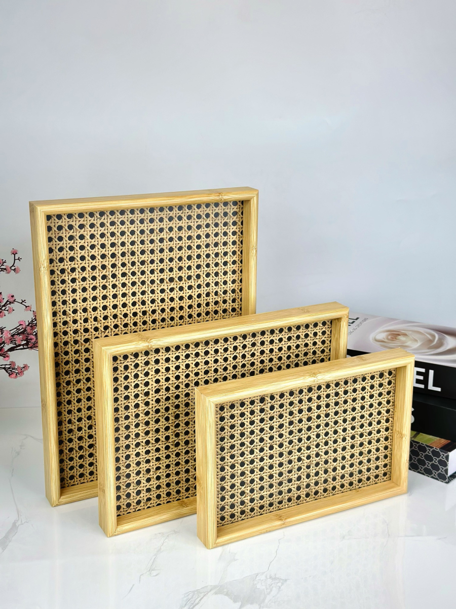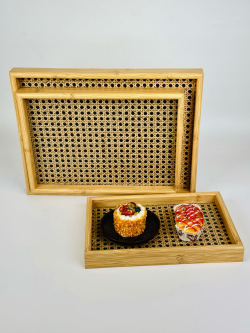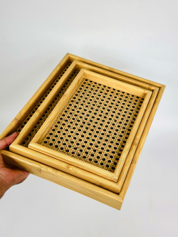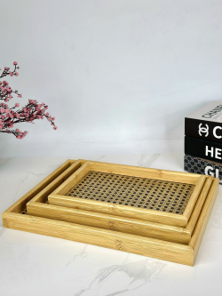 طقم صيني خشب بامبو ثلاثي نقش E-4
