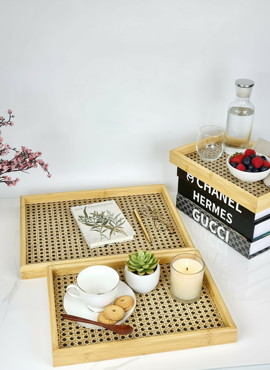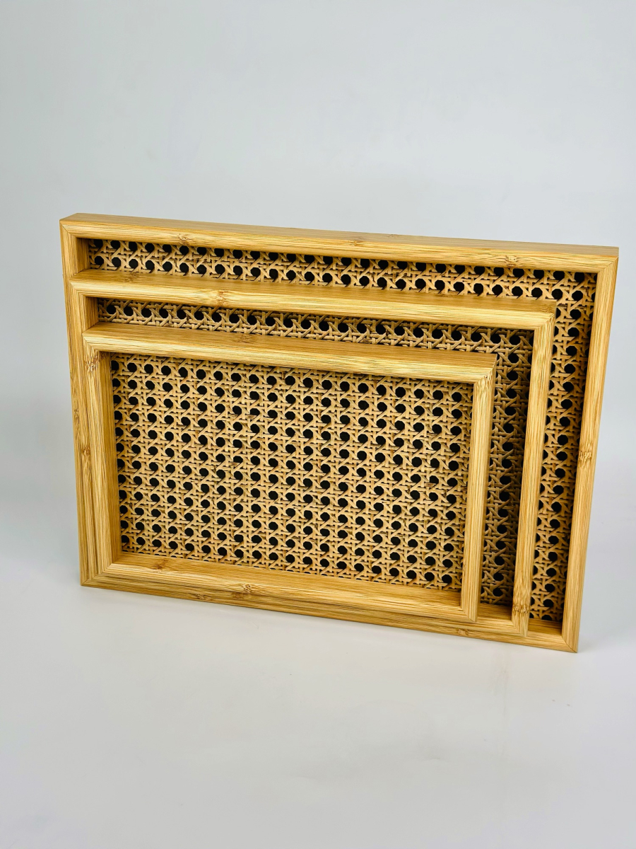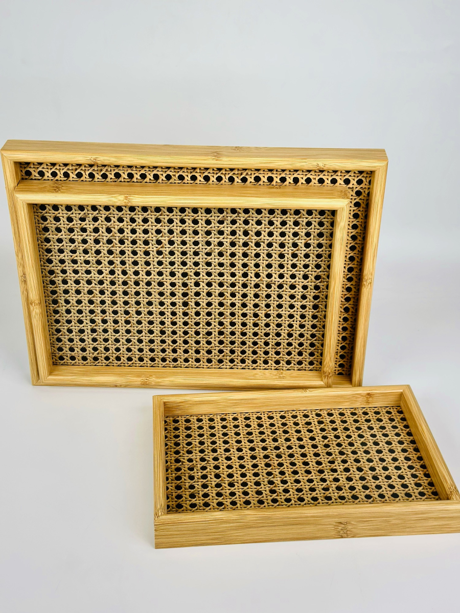 طقم صيني خشب بامبو ثلاثي نقش E-4