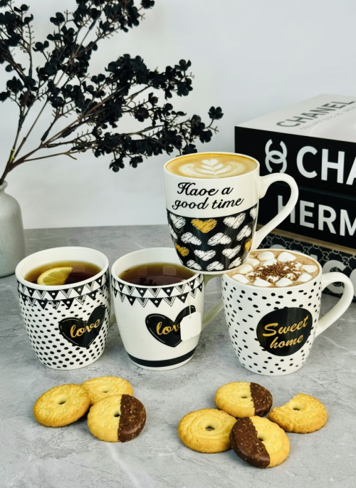 طقم 6 قطعة اكوب و صحن سیرامیک نقش ذهبي - A