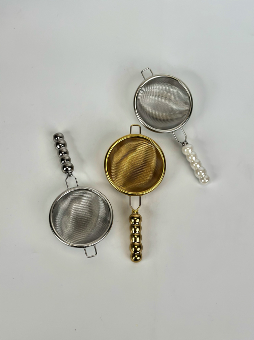 مصفاة شايي يد زجاج ابيض،ذهبي،فيضي