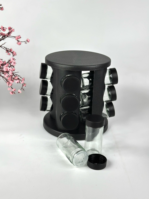طقم توابل زجاجي 12 عدد مع قاعدة دوارة 360 درجة
