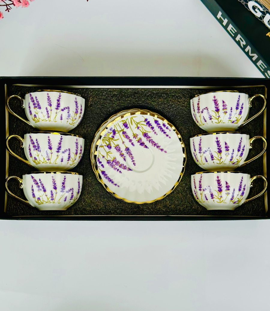 طقم سكر وشايي سيراميك وقاعدة بامبو جديد