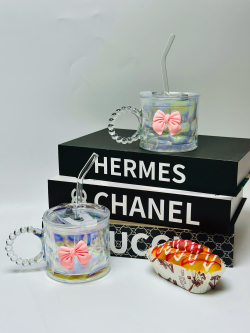 طقم سكر وشايي زجاج ثلاثي ويه ملاعق و قبق خشبي