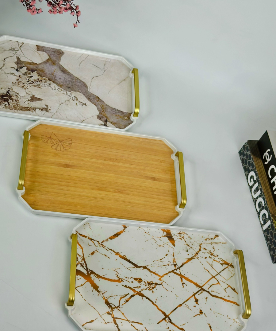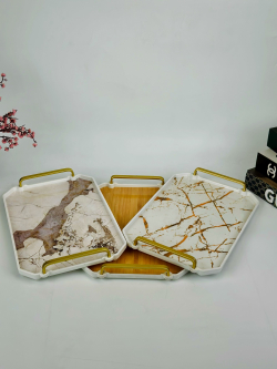 طقم صيني بامبو مستطيل ثلاثي يد ذهبي