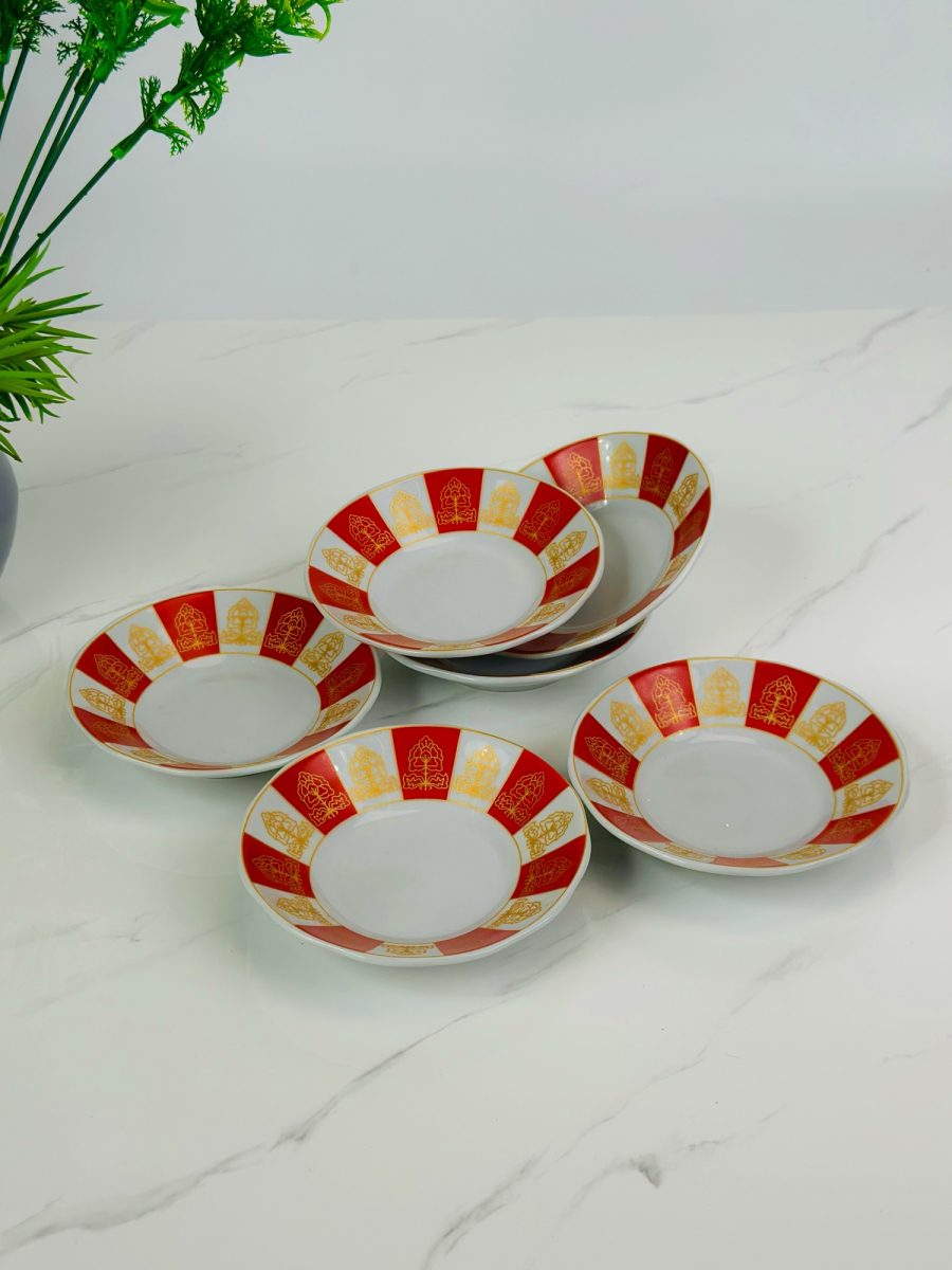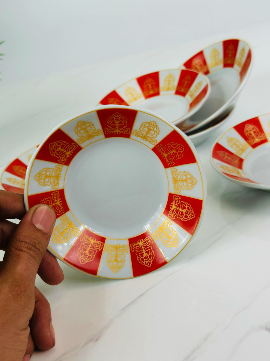 صحن استكانه سيراميك زهرة احمر 6 عدد