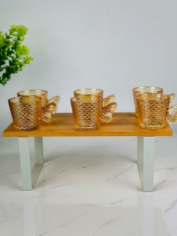 طقم سكر وشايي سيراميك قاعدة بامبو دايميوند