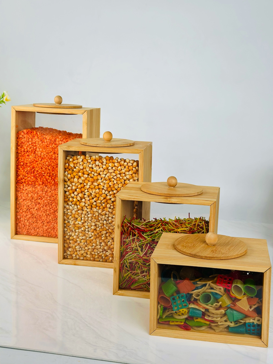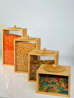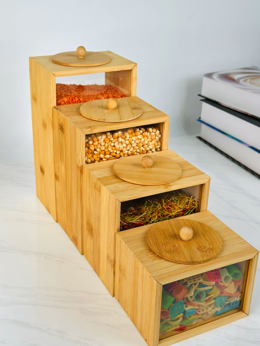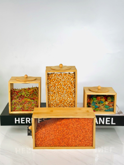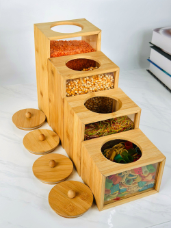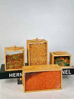 طقم سكر و شايي و قهوه سيراميك و قاعدة بامبو bh-4