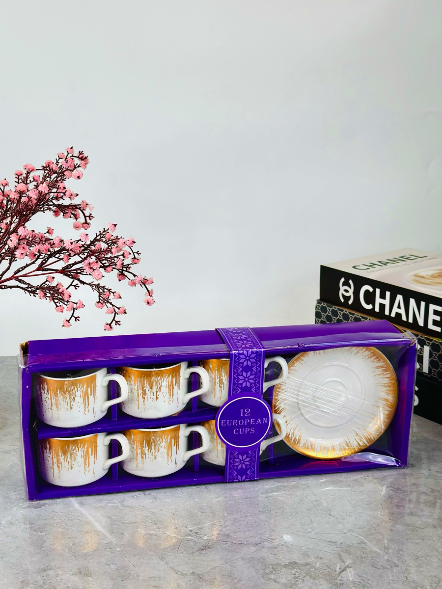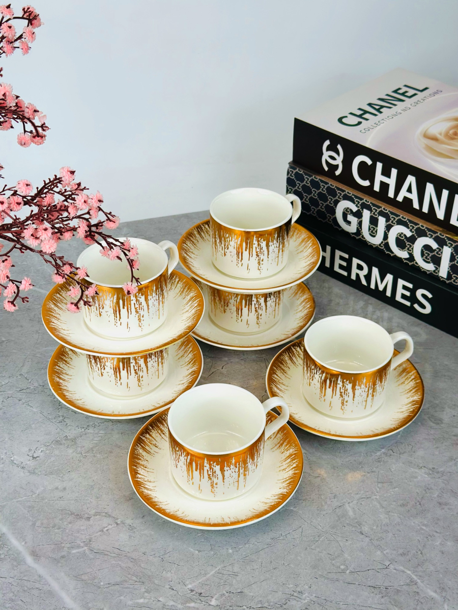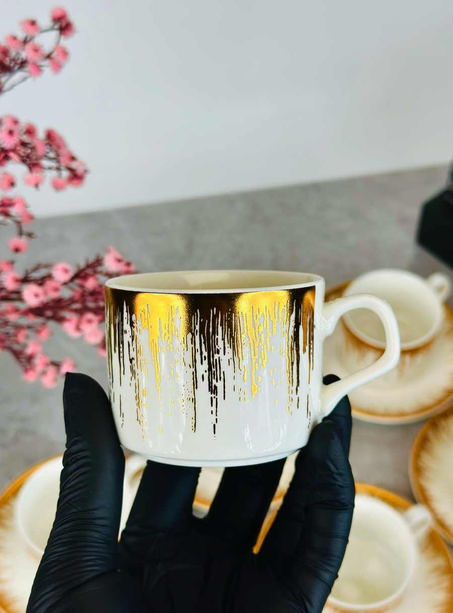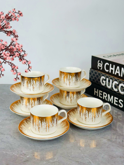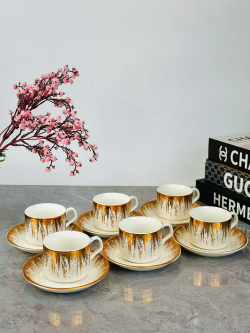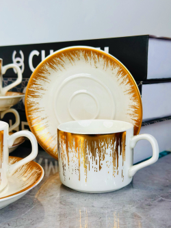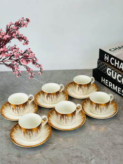 طقم 6 قطعة فنجان و صحن سیرامیک نقش ذهبي - B