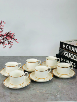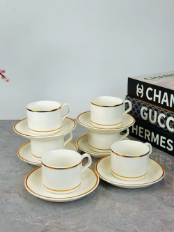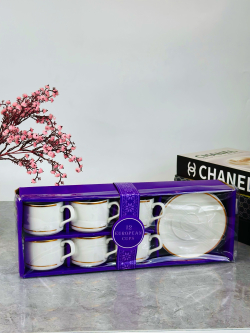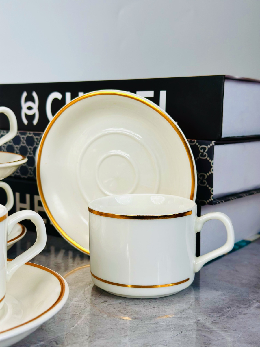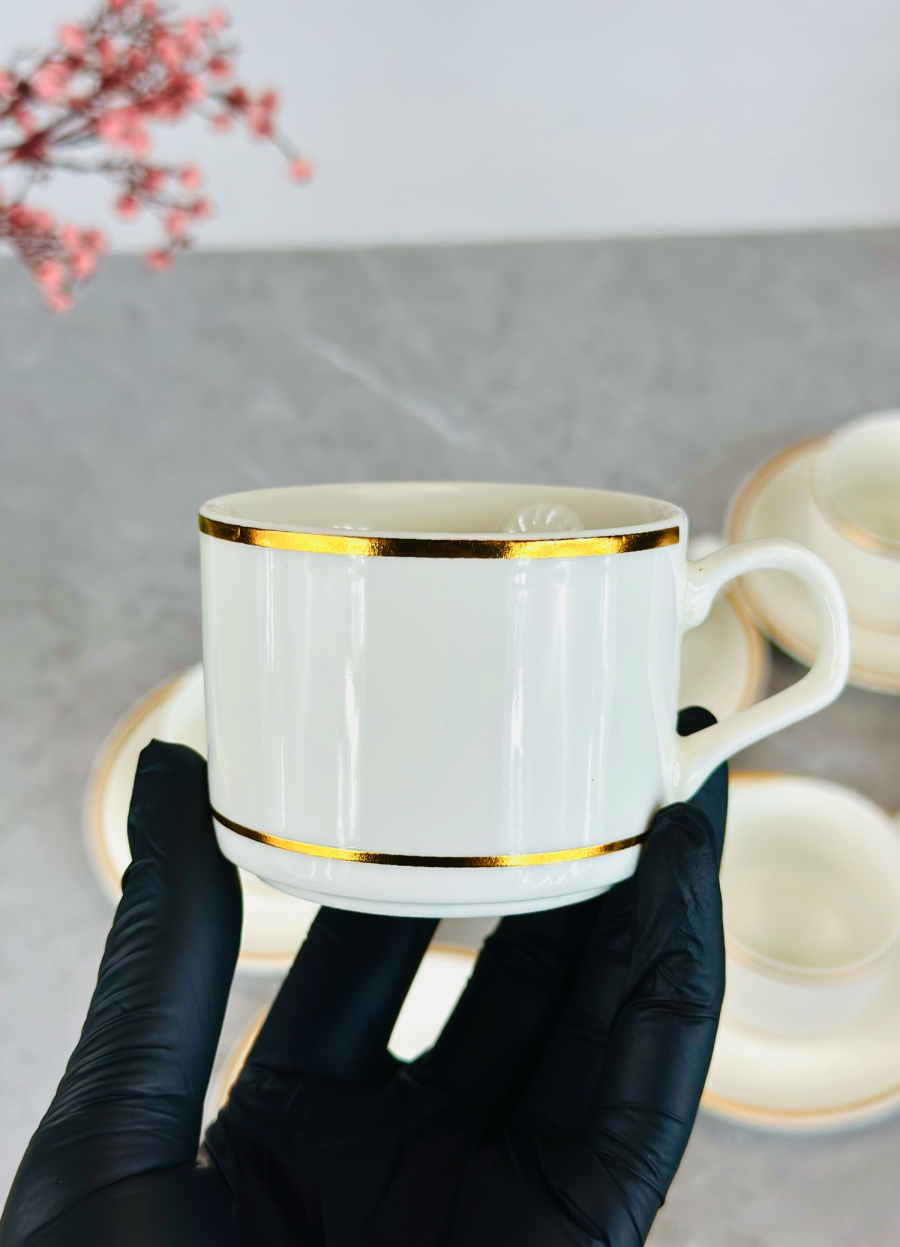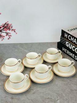 طقم 6 قطعة فنجان و صحن سیرامیک نقش ذهبي - E