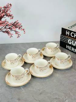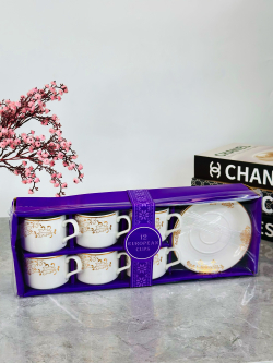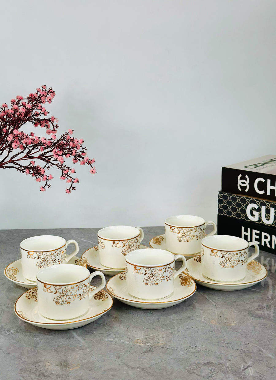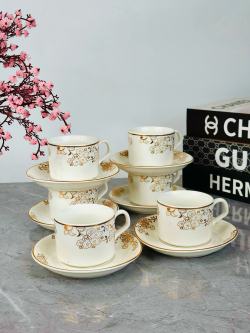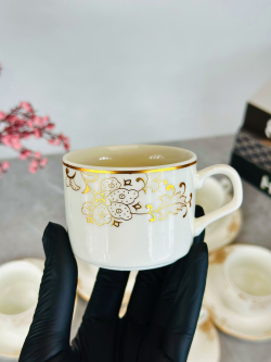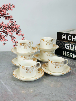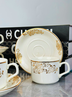 طقم 6 قطعة اكوب و صحن سیرامیک نقش ذهبي - J