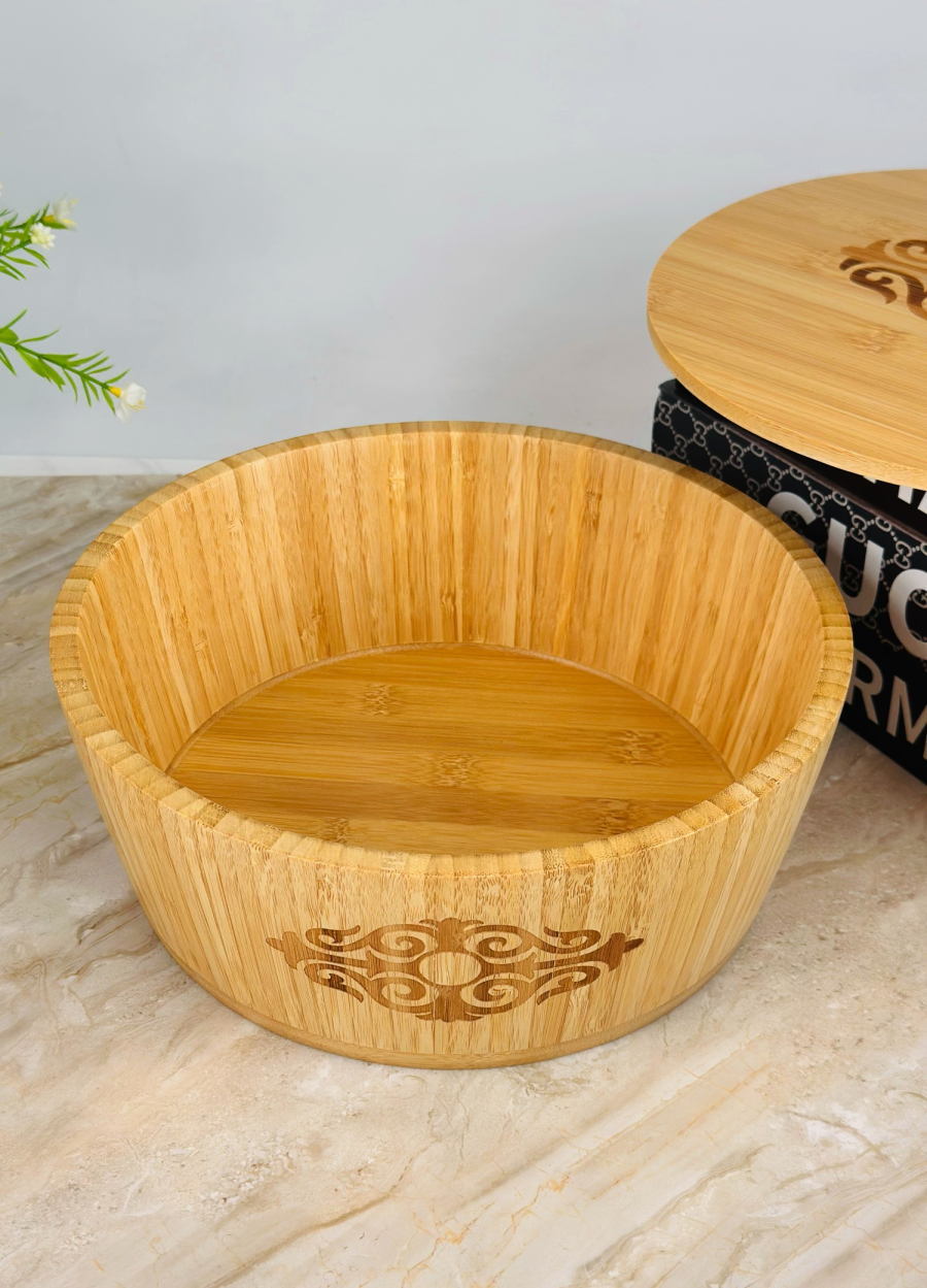 تختة مثرامة بامبو مع 2 وعاء ستيل