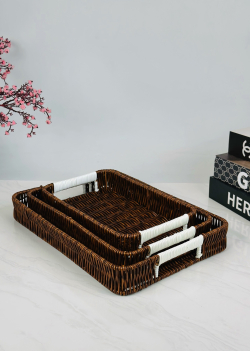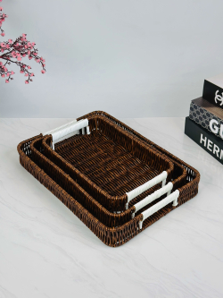 طقم سلة او صيني خوص ثلاثي مستطيل CH4