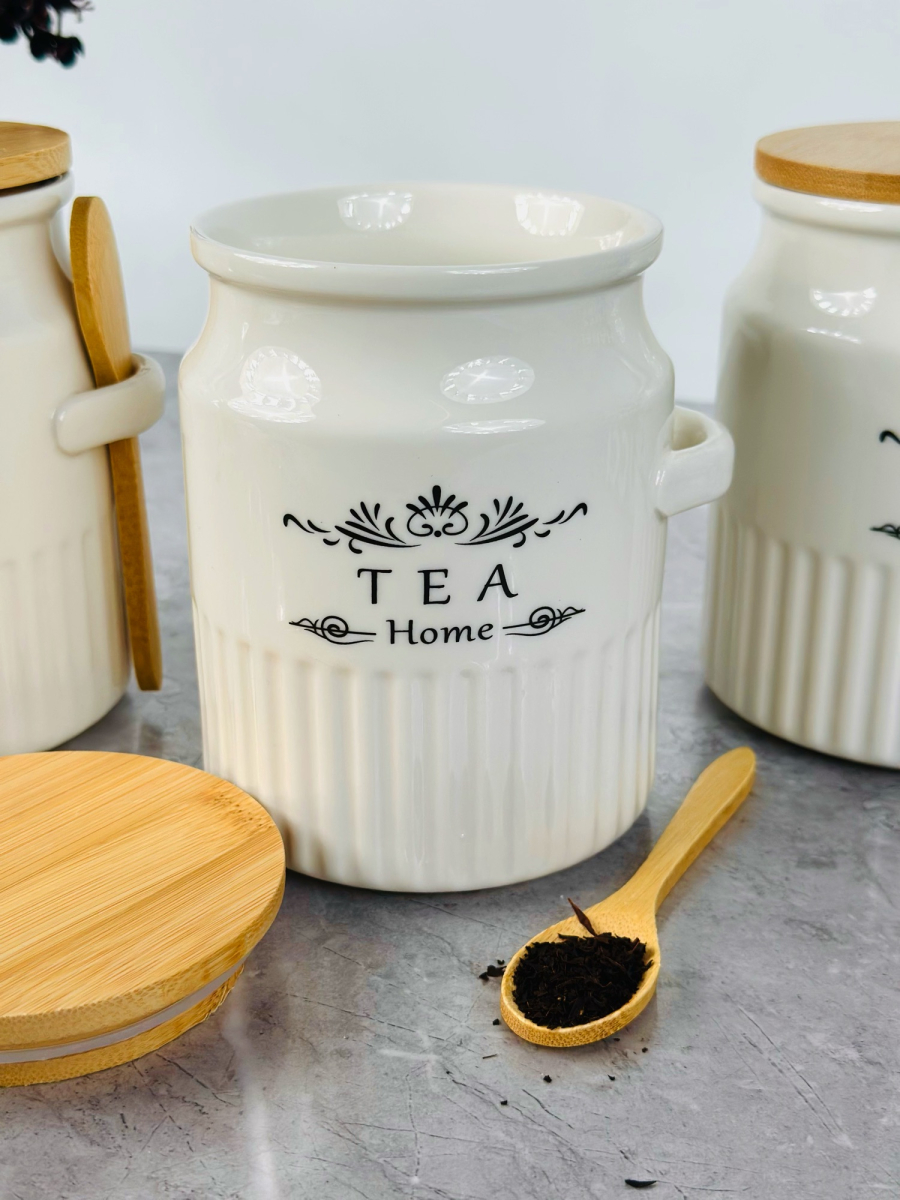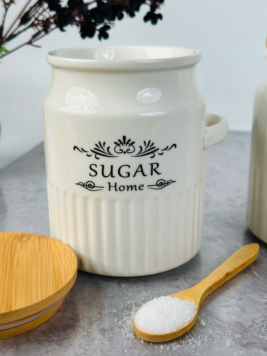 طقم سكر وشايي سيراميك كبير ويه ملاعق B