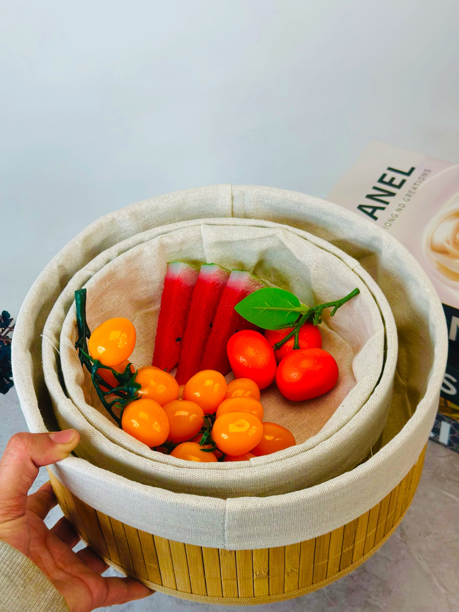 طقم سلة 3 عدد بامبو و اقمشة دائري