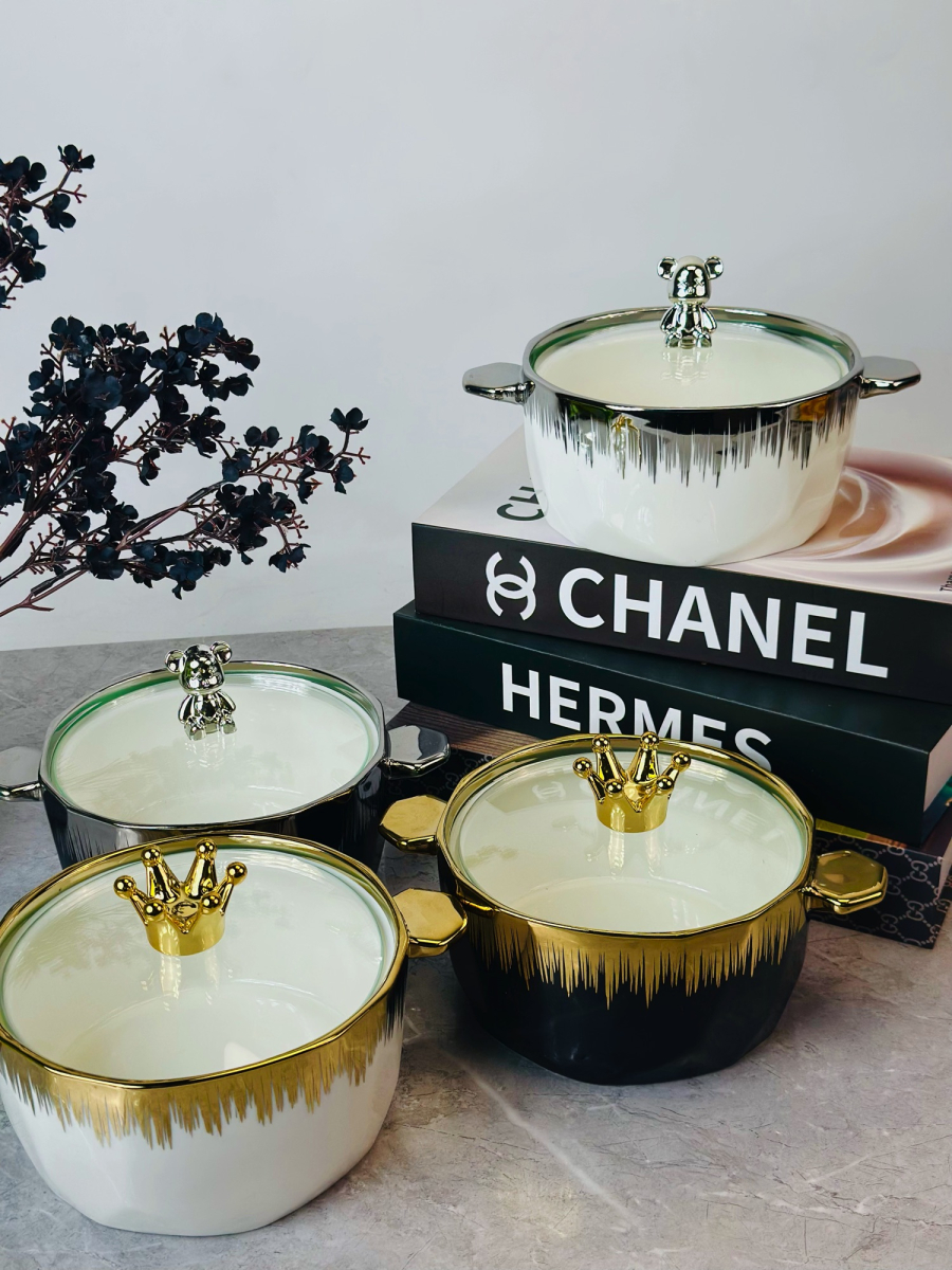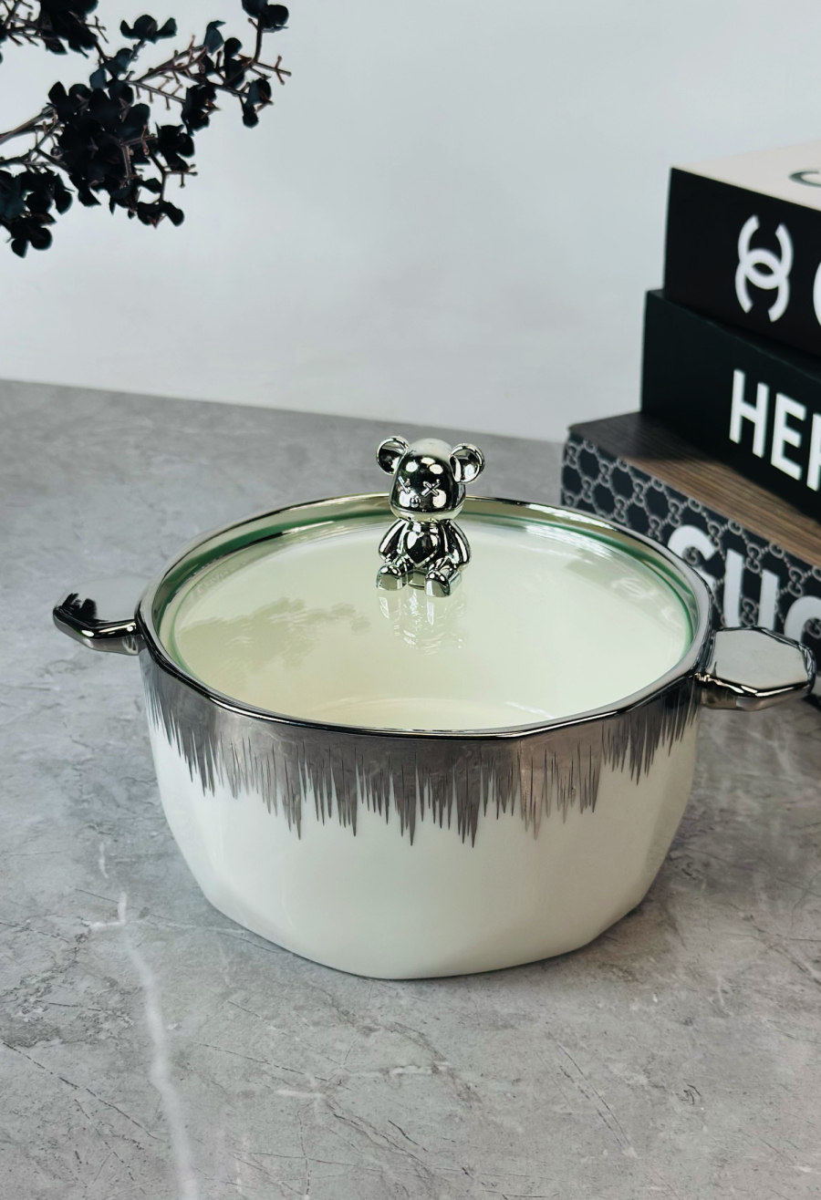 جدرية سيراميك قبق دب اسود و ابيض و اطار ذهبي