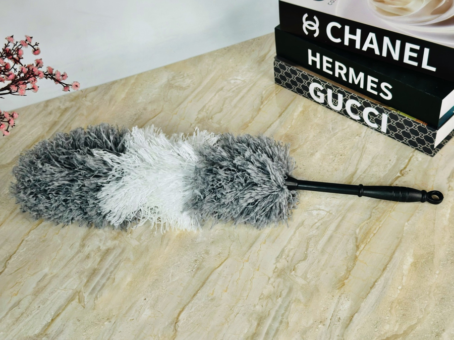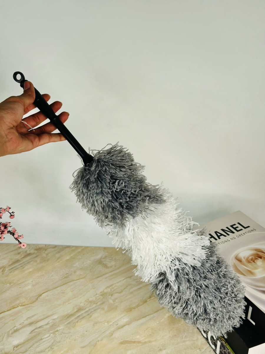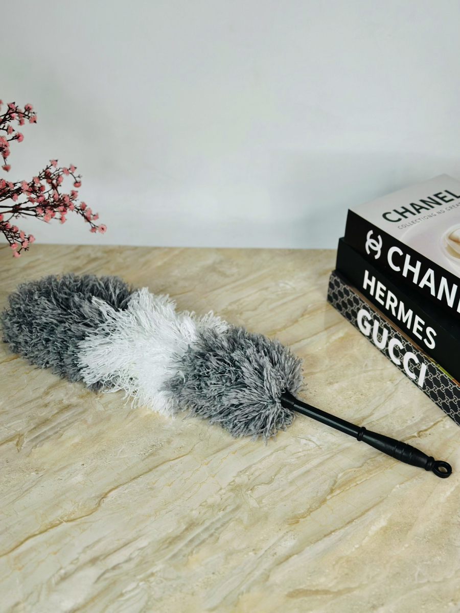 منفضة تنظيف قابلة للدوران بمقبض طويل رصاصي و ابيض