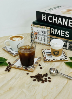 قواعد أكواب مطبوعة عليها اقتباسات عن القهوة، مناسبة للشاي/القهوة 44