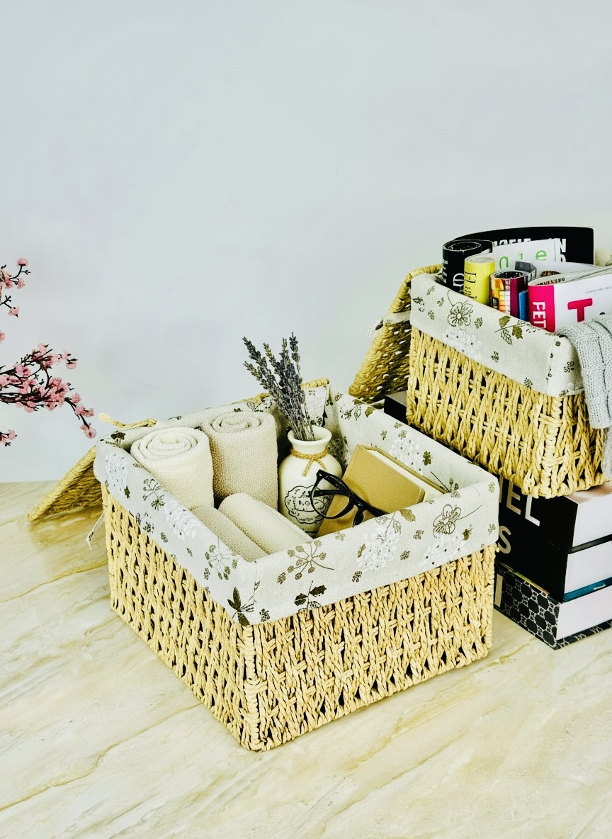 طقم سلة خوص قطعتين مربع عميق ابو قبق بيجي