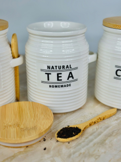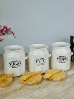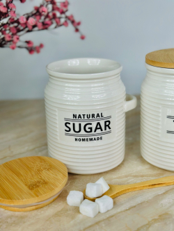 طقم سكر وشايي سيراميك كبير ويه ملاعق C