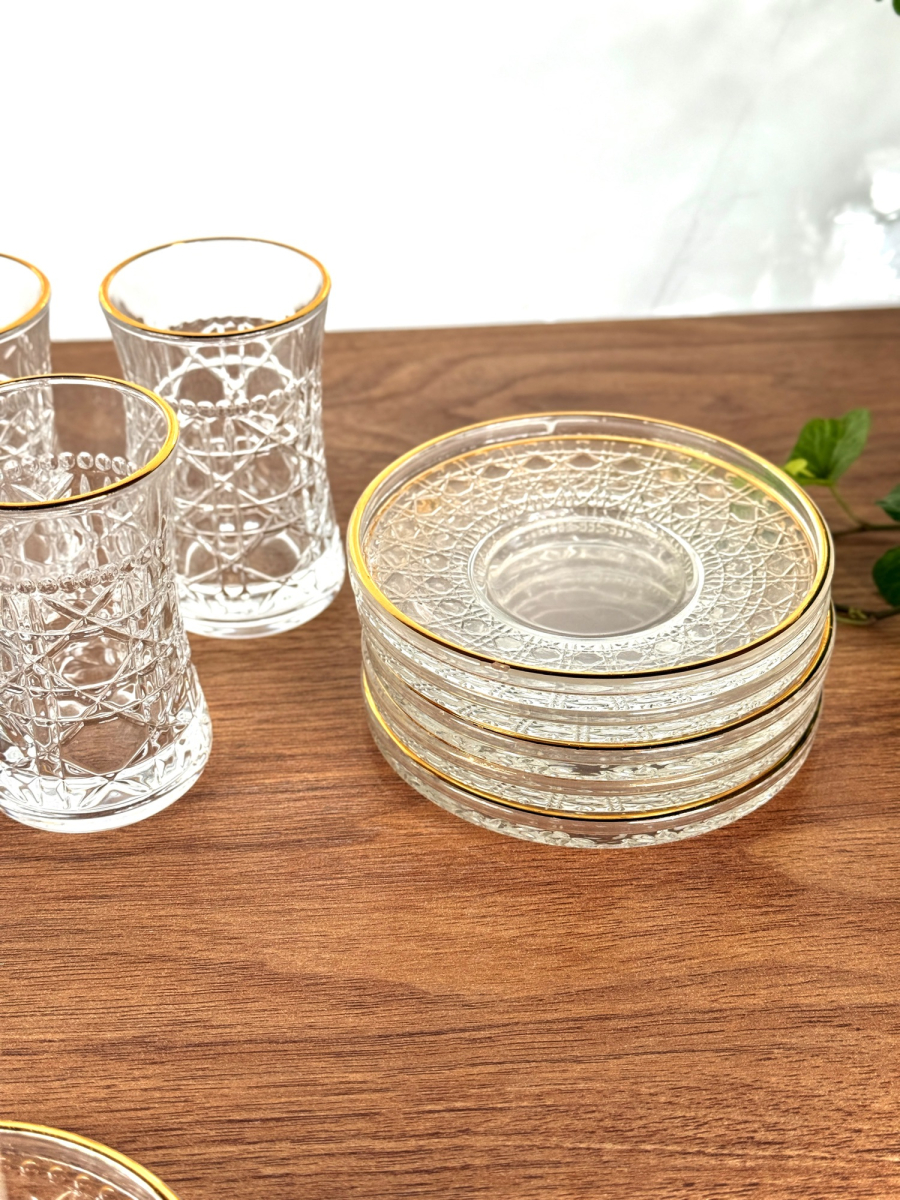 سيت استكاين و صحن اطار ذهبي زخرفة