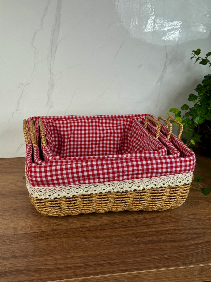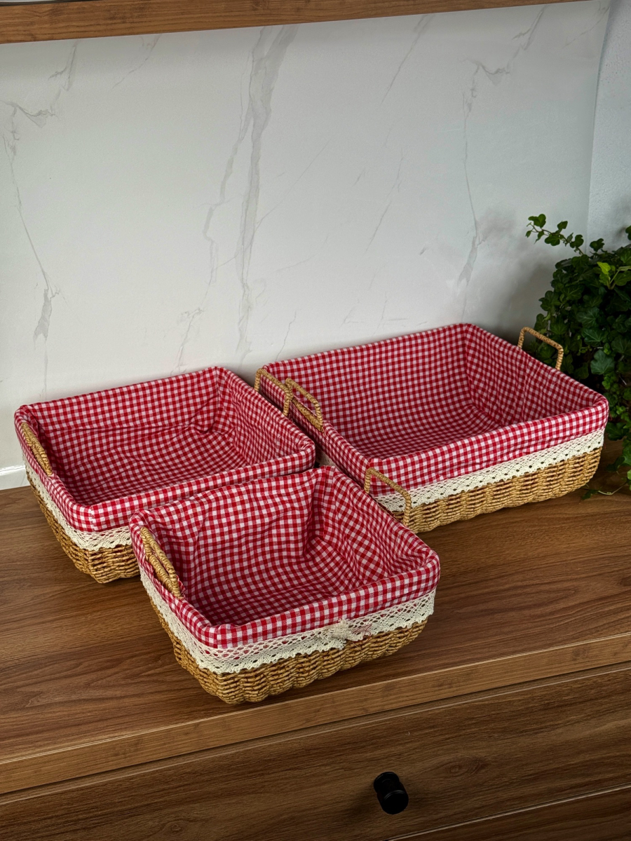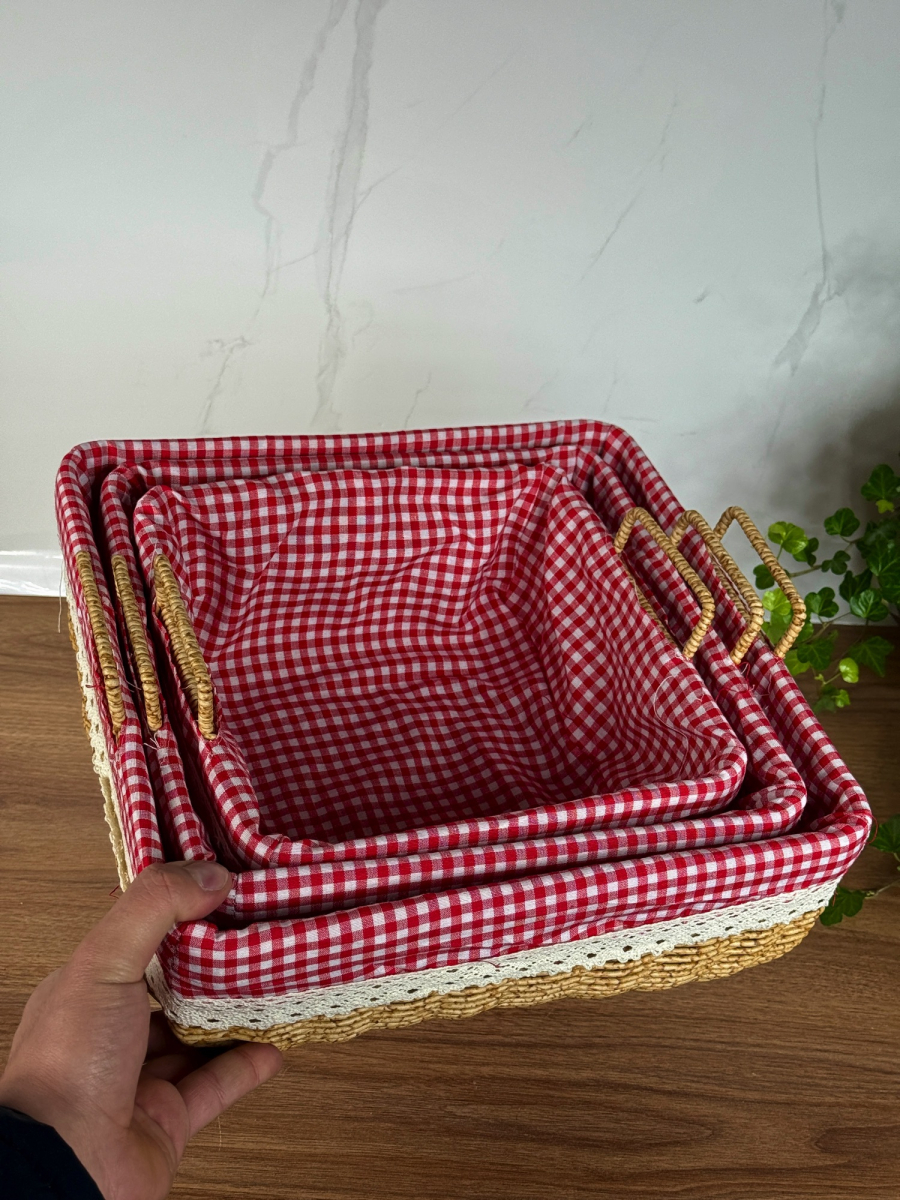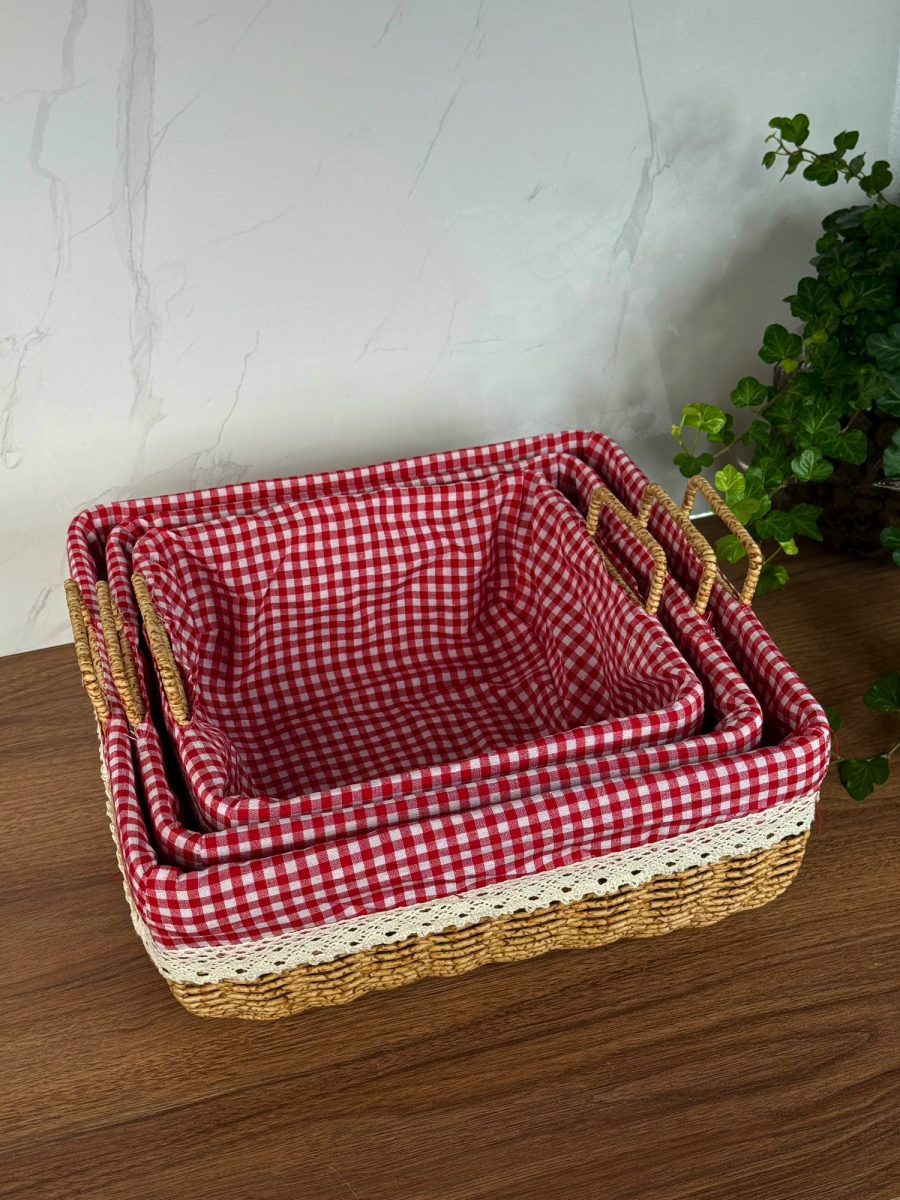سيت سلة كبير ثلاثي داخل اقمشة احمر مربع