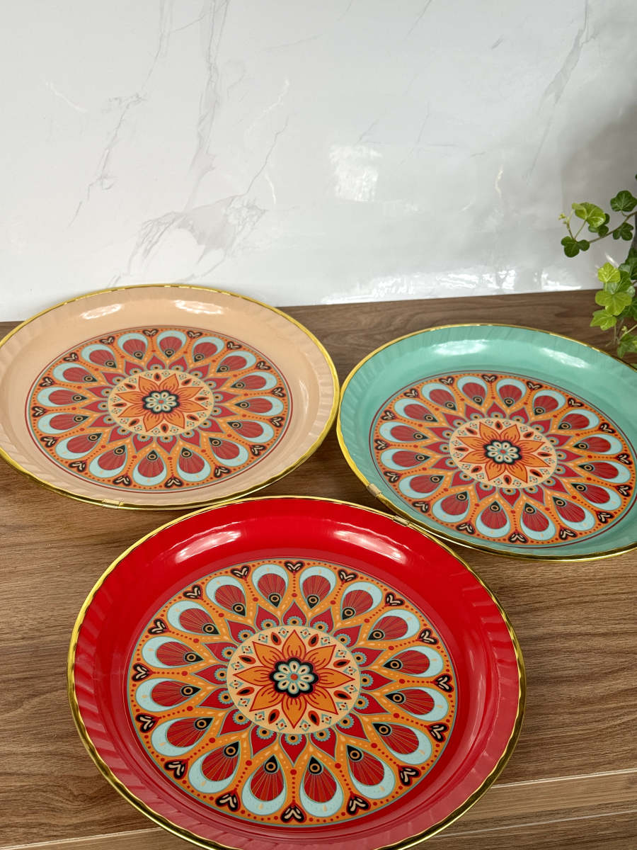 سيت استكاين و صحن اطار ذهبي زخرفة