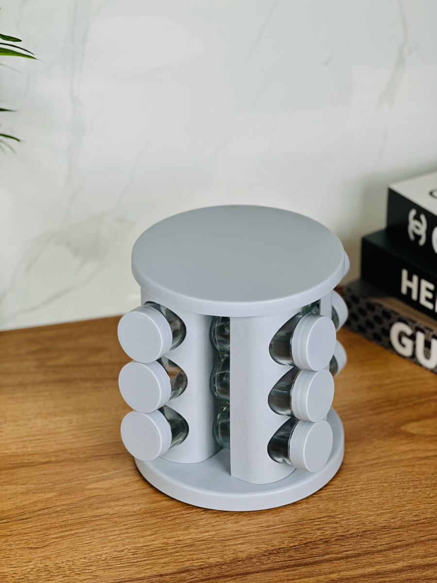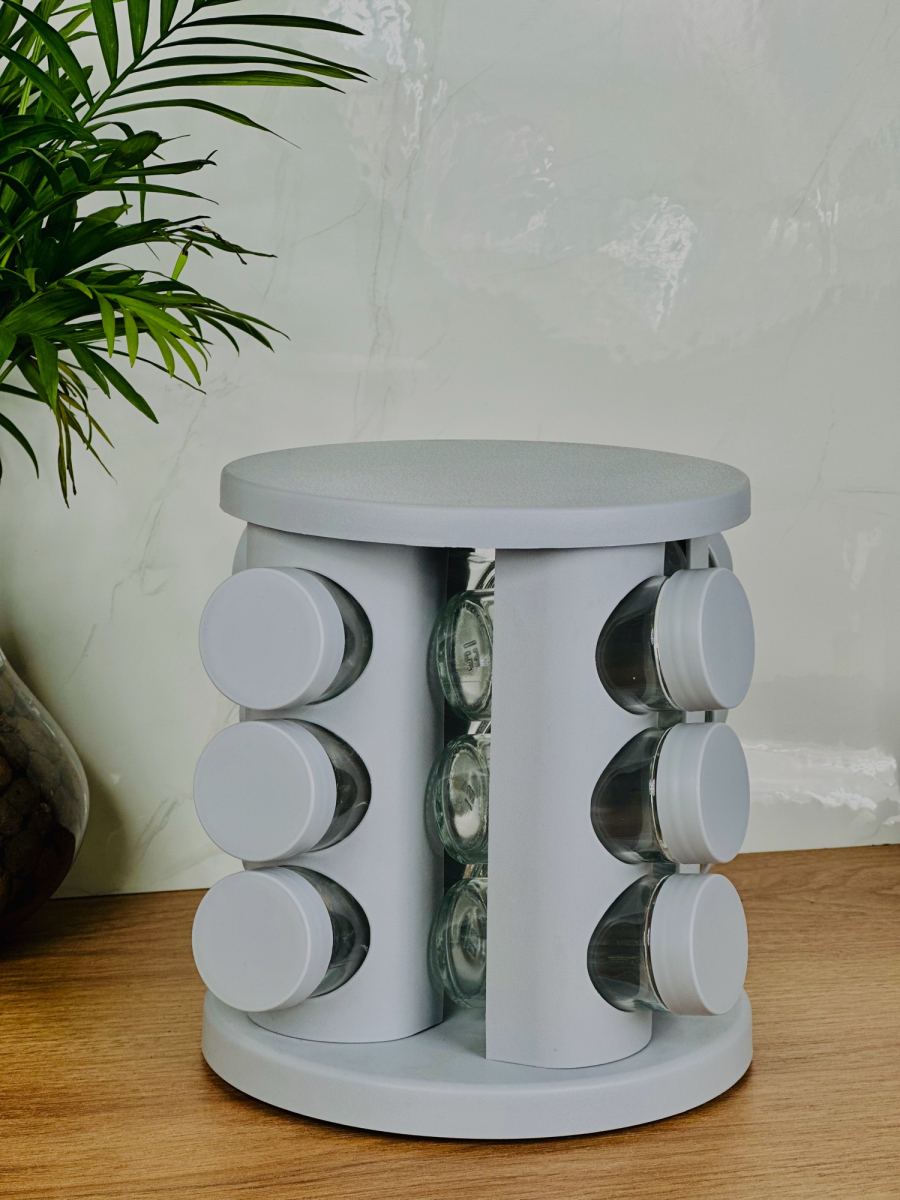 طقم توابل زجاجي 12 عدد مع قاعدة دوارة 360 درجة