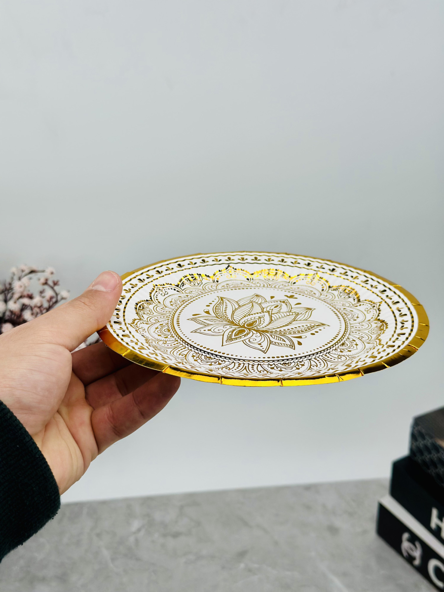 سيت 10عدد أطباق ورقية زخرفة ذهبي A