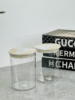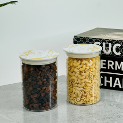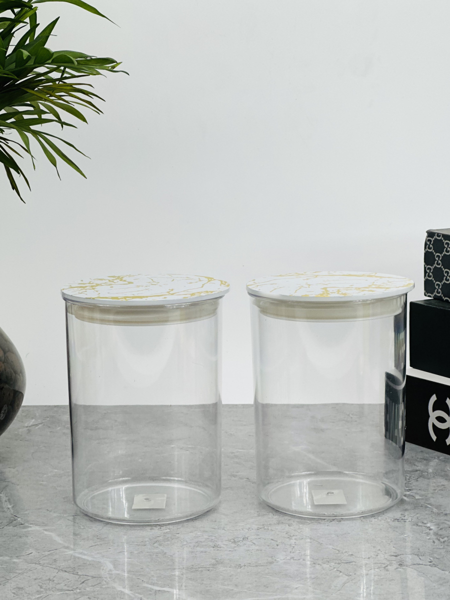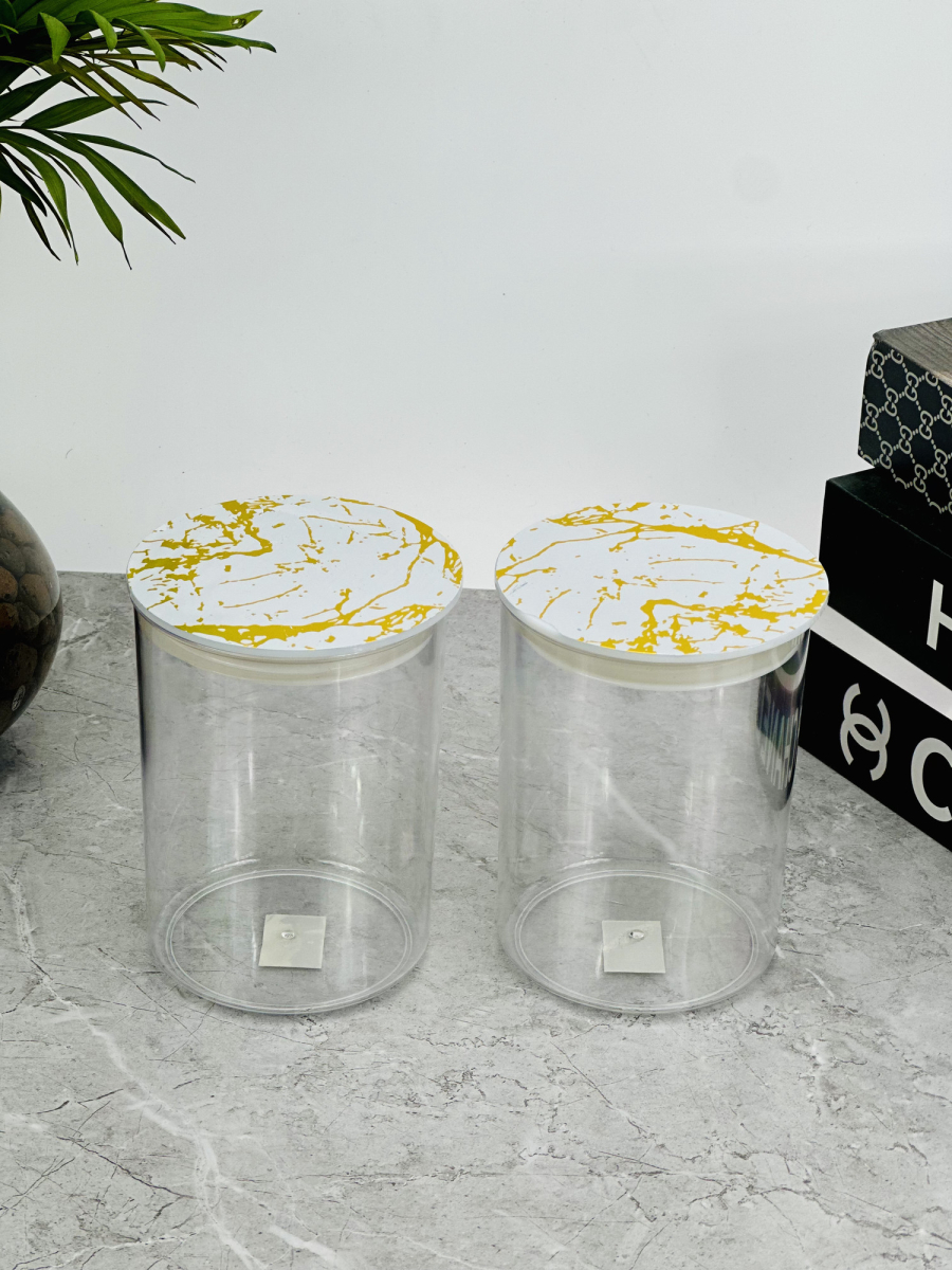 علب اکرلک سكر و بقوليات دائري 14سم قطر 10سم قبق مرمر ذهبي