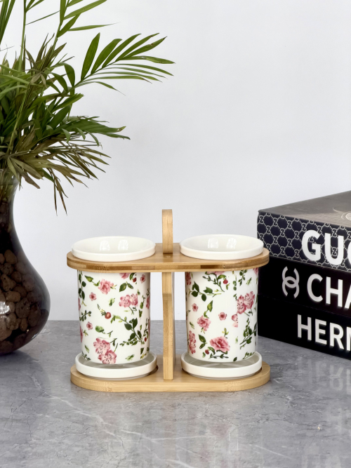 مکان ملاعق سیرامیک زوج ویە قاعدە بامبو وردة