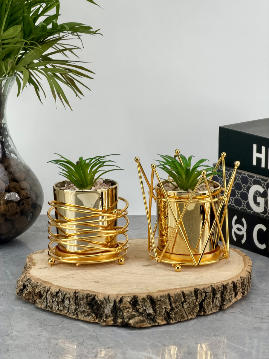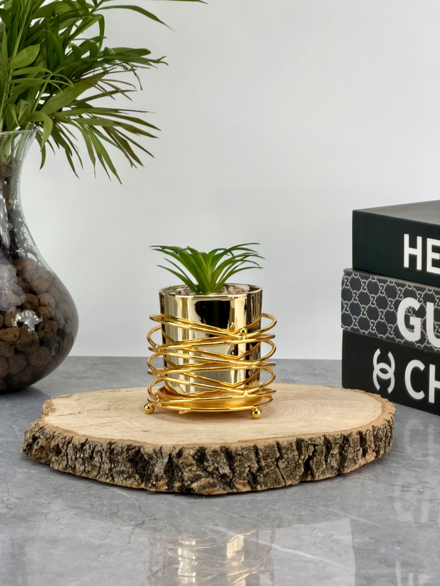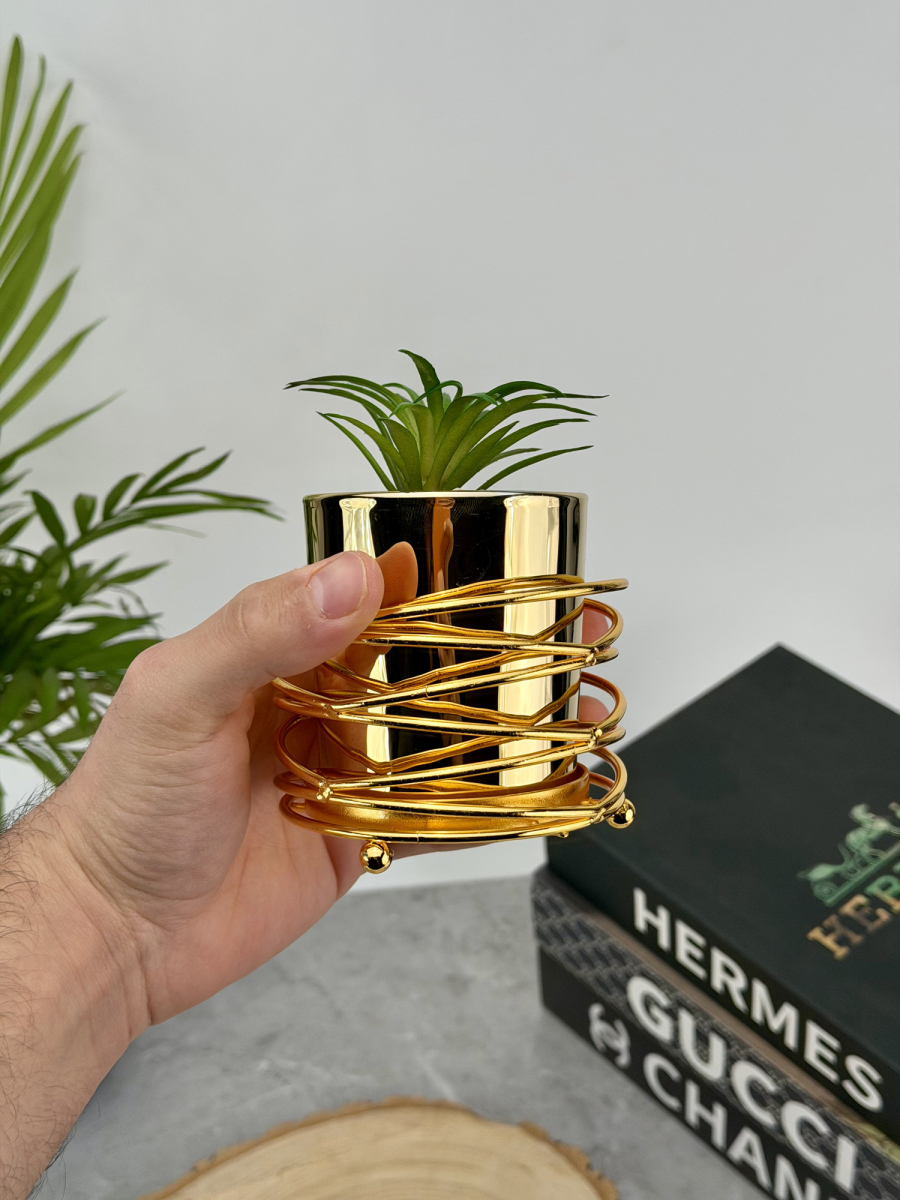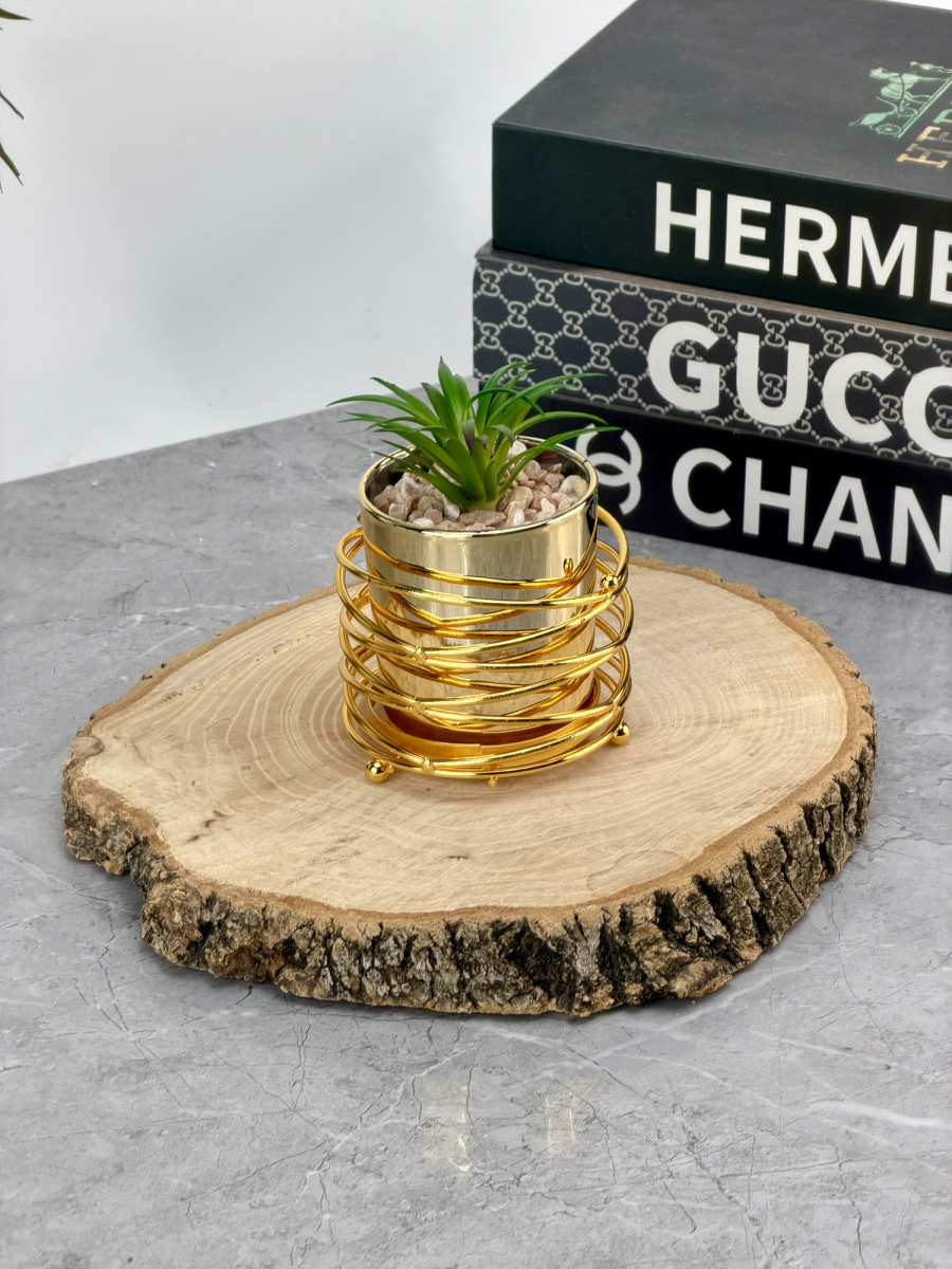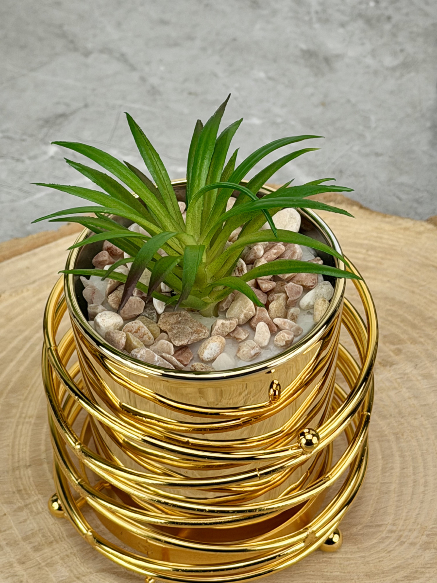 سنادين زرع صناعي بقاعدة ذهبي شكل حلزوني
